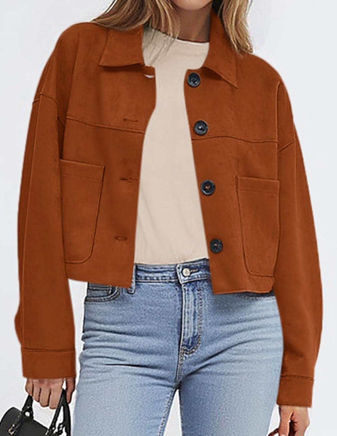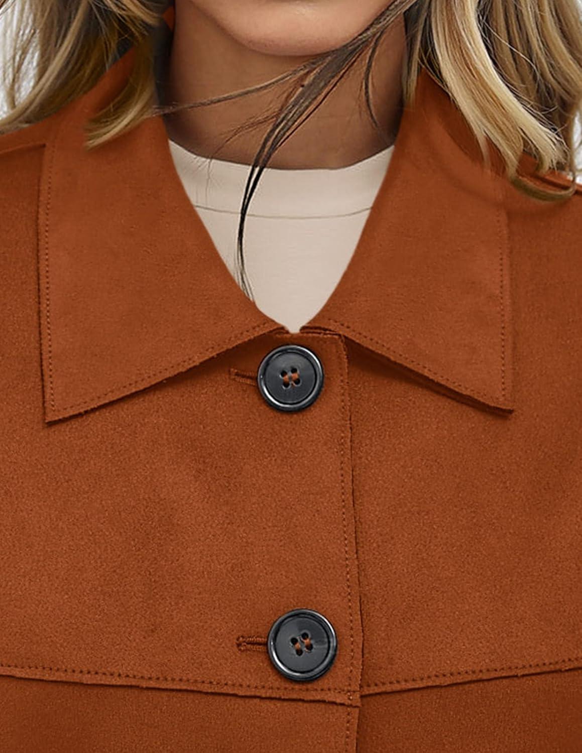 PRETTYGARDEN Women's Faux Suede Cropped Jacket Casual Lightweight Fall Fashion 2025 Winter Coats Outerwear Trendy Clothes(Burnt Orange)