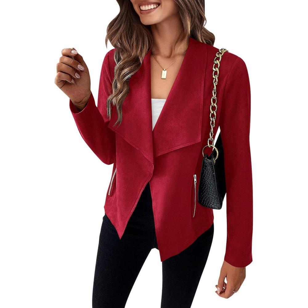 PRETTYGARDEN Women’s Faux Suede Jackets 2026 Fashion Fall Clothes Long Sleeve Open Front Cropped Coat Outwear(Red)