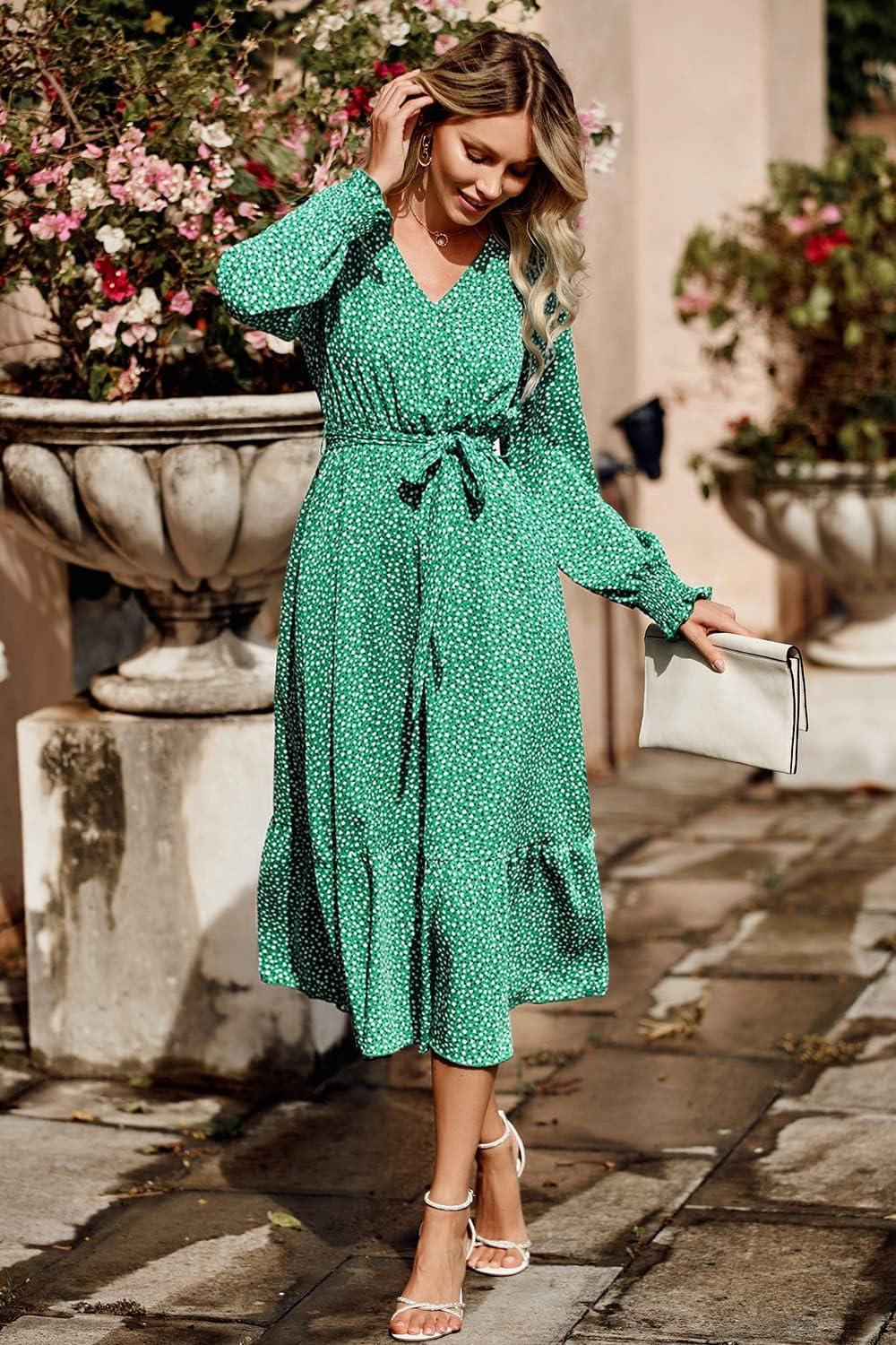 Get more for your money with our exclusive bundle deals on PRETTYGARDEN Women’s Floral Boho Dress Fall Long Sleeve Wrap V Neck Ruffle Flowy Maxi Spring Wedding Guest Vacation Dresses(B_green) and accessories.
