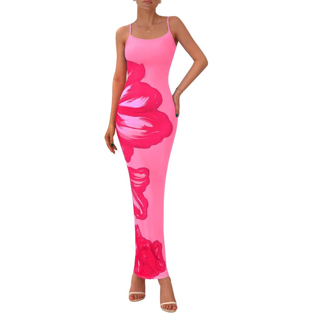 PRETTYGARDEN Womens Floral Maxi Dress Summer 2026 Sexy Spaghetti Strap Slip Bodycon Mesh Beach Vacation Dresses(Pink Floral)