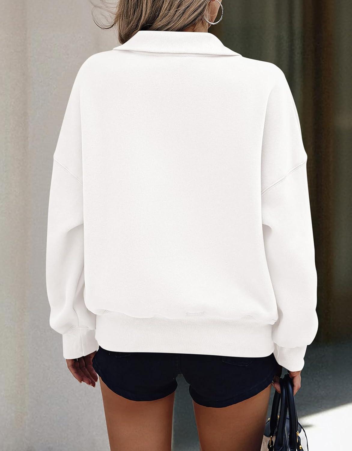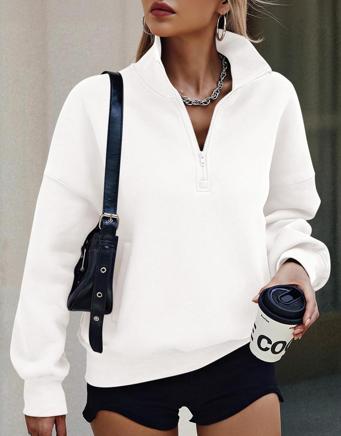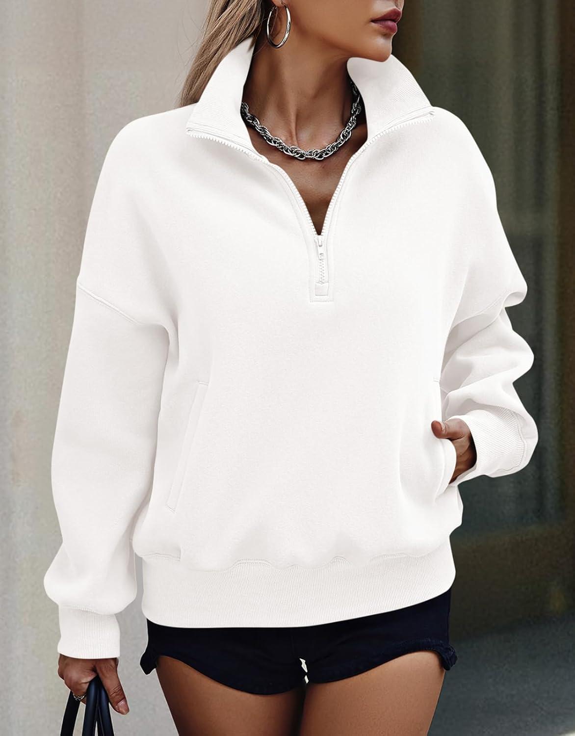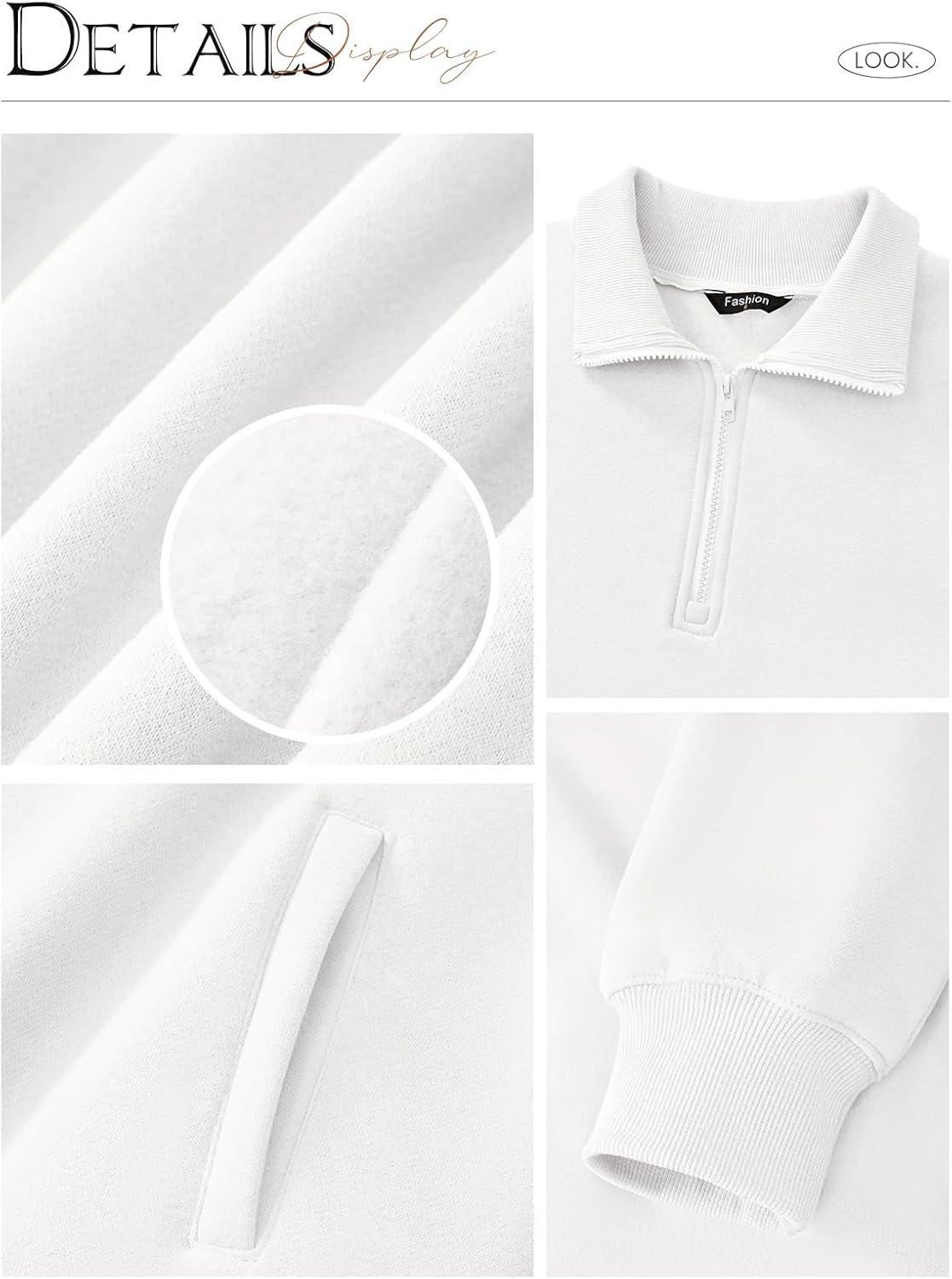 PRETTYGARDEN Womens Half Zip Sweatshirts Hoodies 2024 Trendy Long Sleeve Pullover Tops Fall Winter Outfits with Pockets(White)