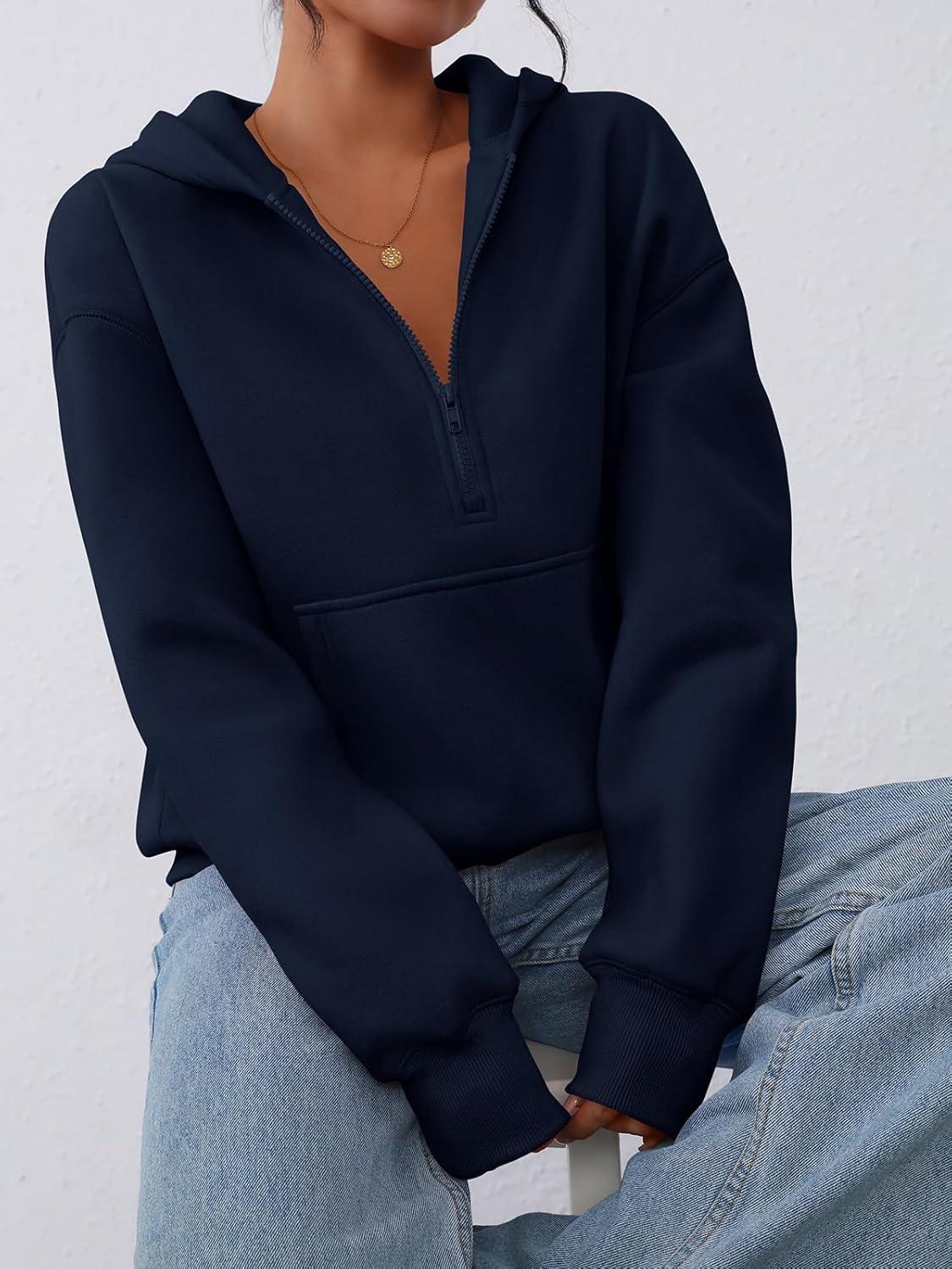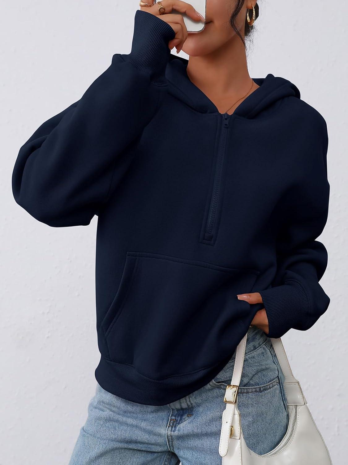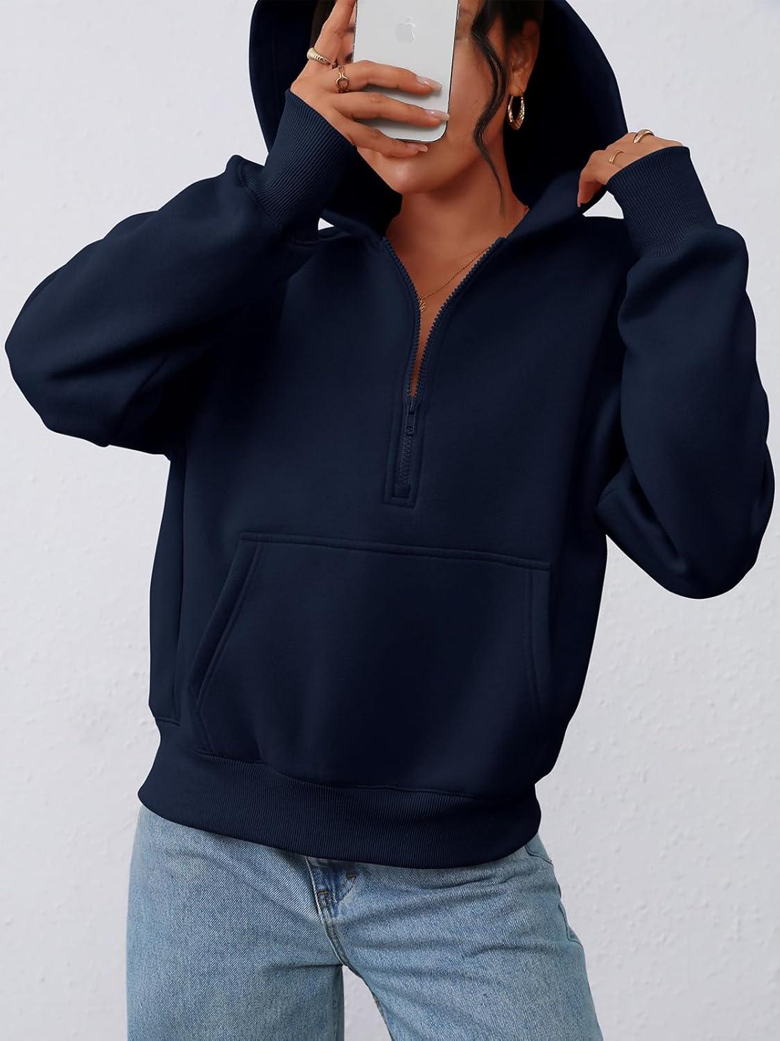 PRETTYGARDEN Women's Half Zip Up Hoodies 2025 Fall Long Sleeve Cropped Pullover Oversized Sweatshirt Fashion Y2K Clothes(Navy)