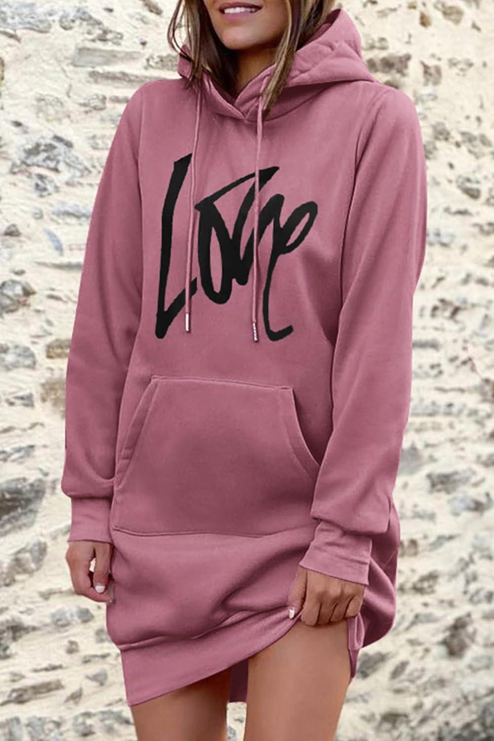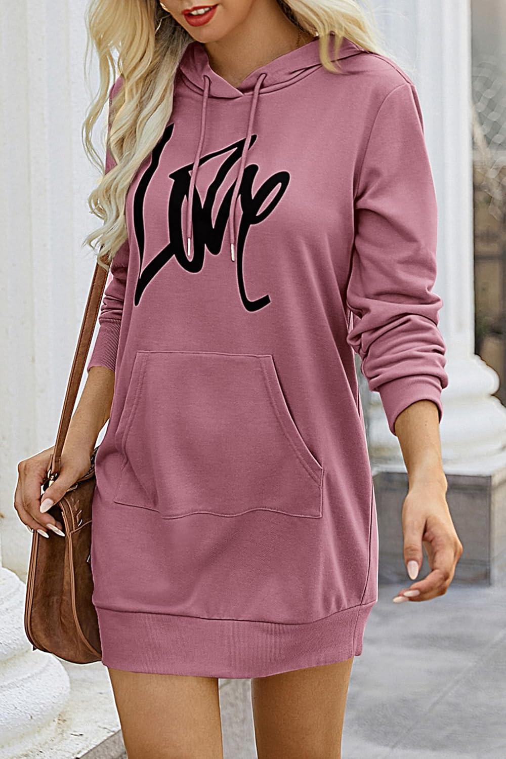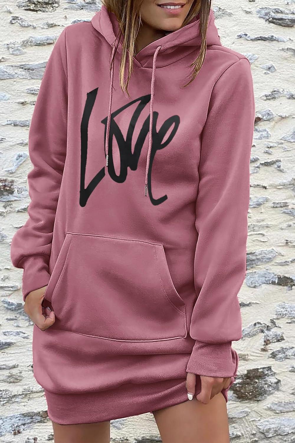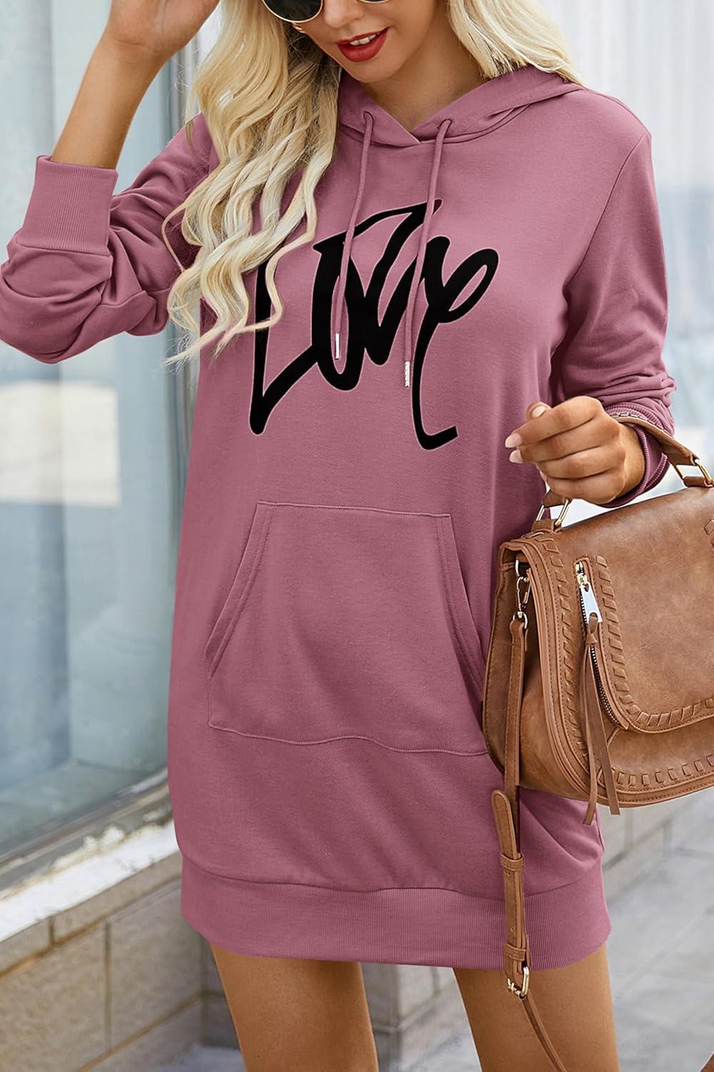 PRETTYGARDEN Women's Hooded Sweatshirt Fall Fashion Drawstring Lightweight Long Sleeve Pullover Hoodie Dress(Bean Paste Pink)