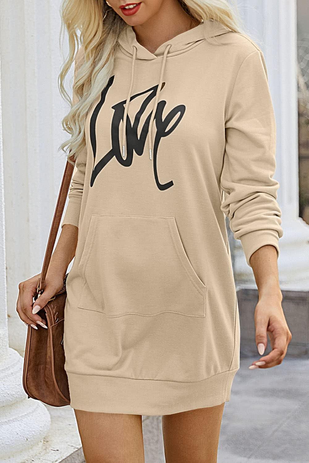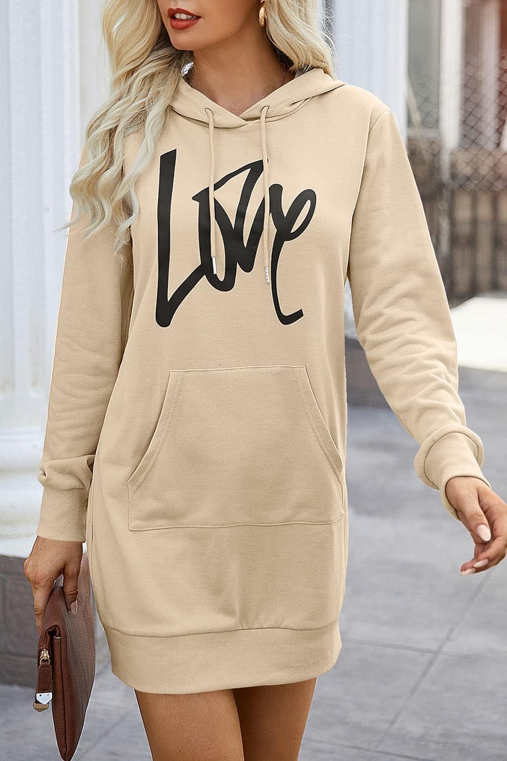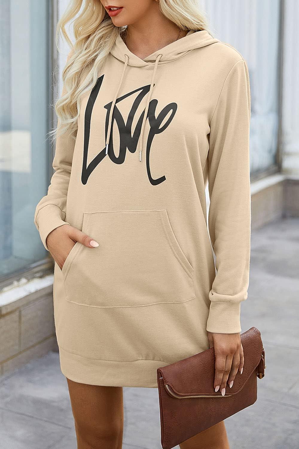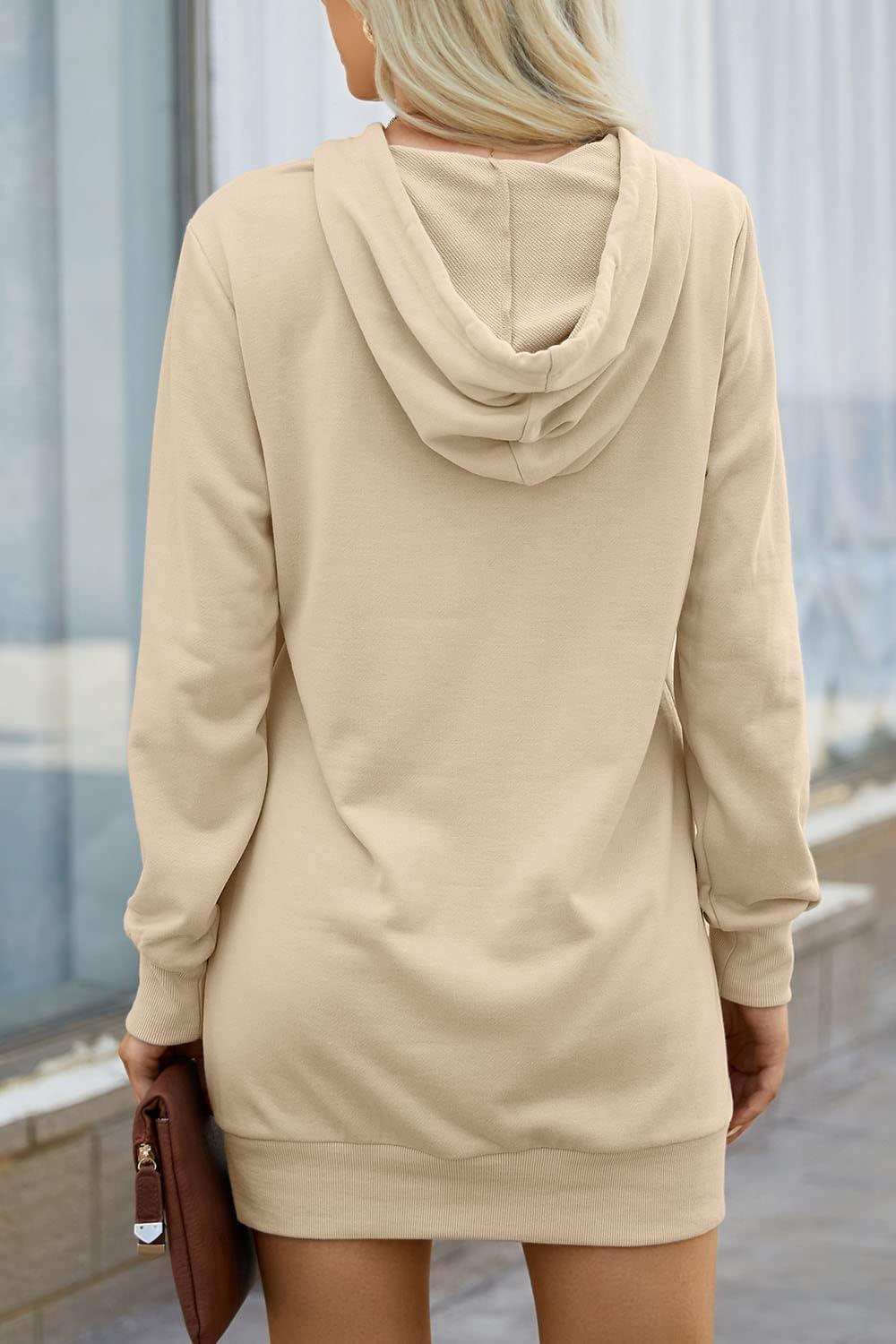 PRETTYGARDEN Women's Hooded Sweatshirt Fall Fashion Drawstring Lightweight Long Sleeve Pullover Hoodie Dress(Light Apricot)