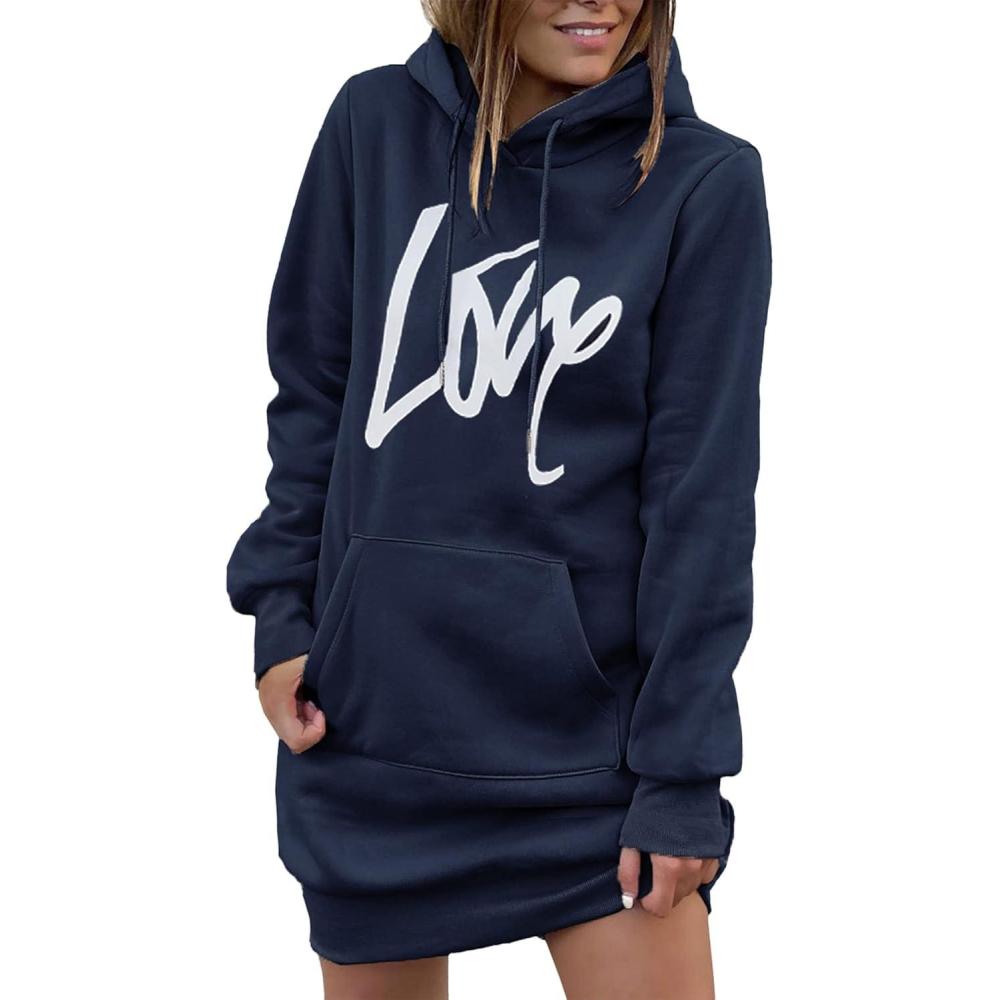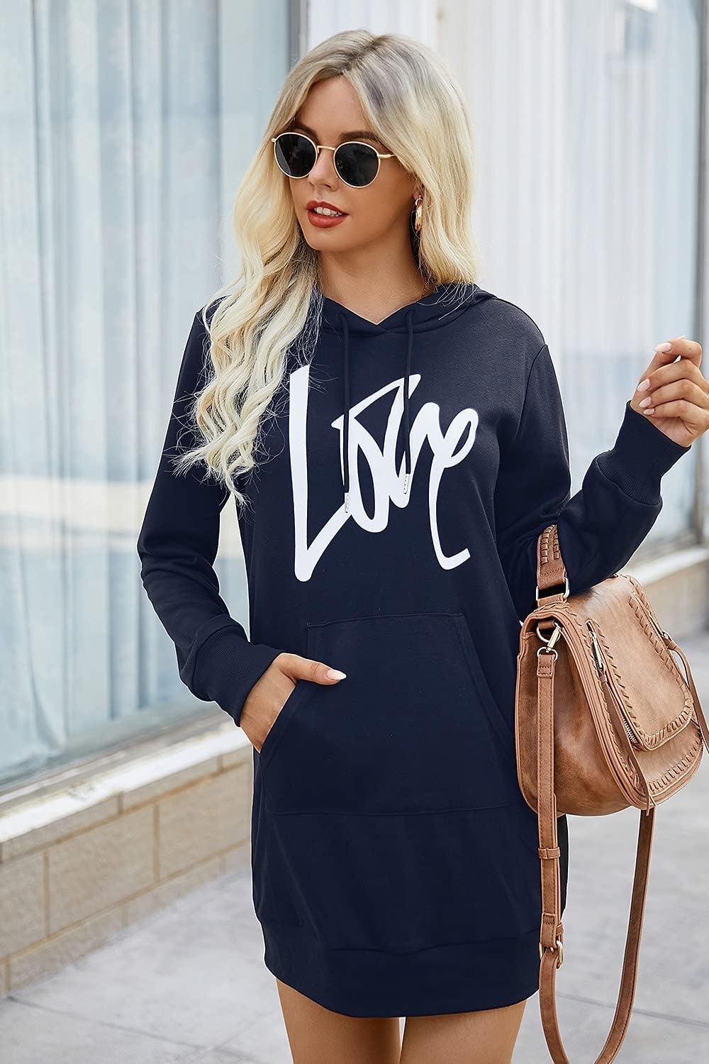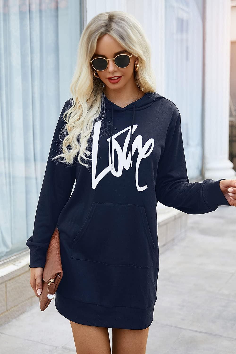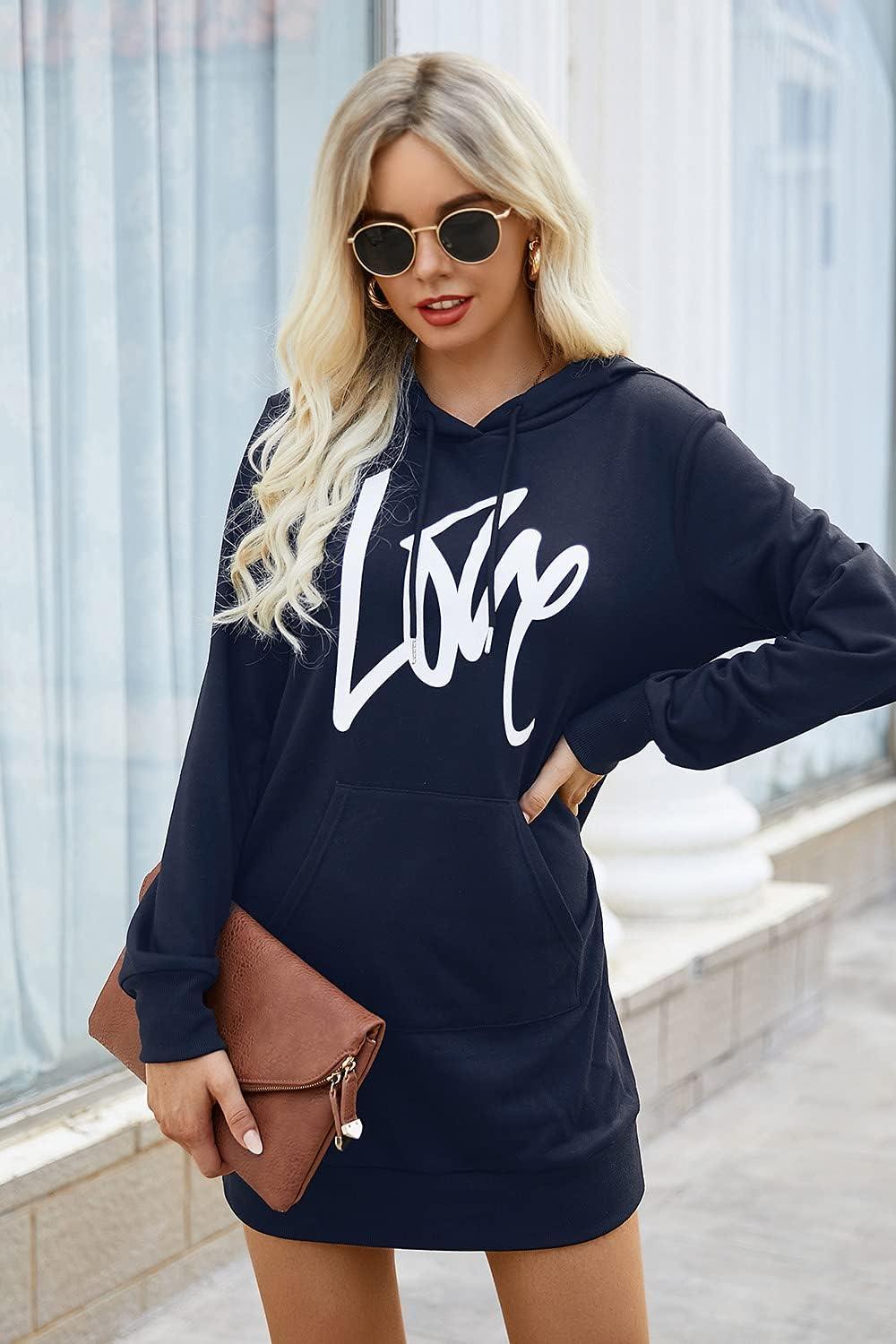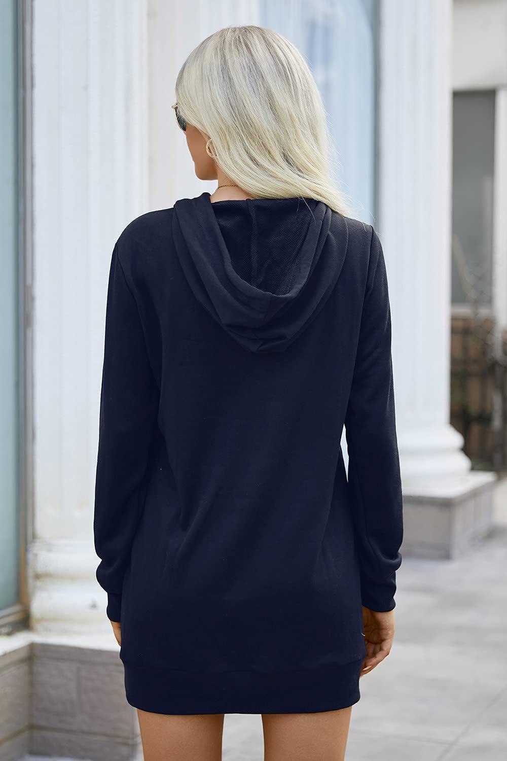 PRETTYGARDEN Women's Hooded Sweatshirt Fall Fashion Drawstring Lightweight Long Sleeve Pullover Hoodie Dress(Navy)