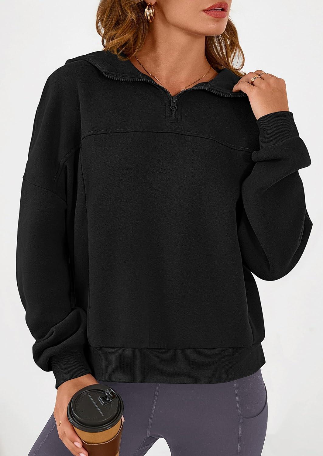 PRETTYGARDEN Womens Hoodies Cropped Fleece Sweatshirts 2025 Fall Fashion Quarter Zip Pullover Long Sleeve Tops Winter Clothes(Black)