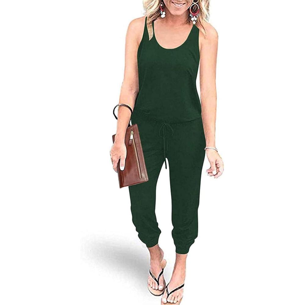 PRETTYGARDEN Womens Jumpsuit Casual Summer Romper 2025 Sleeveless Tank Lounge Cruise Airport Outfits Vacation Clothes(Dark Green)