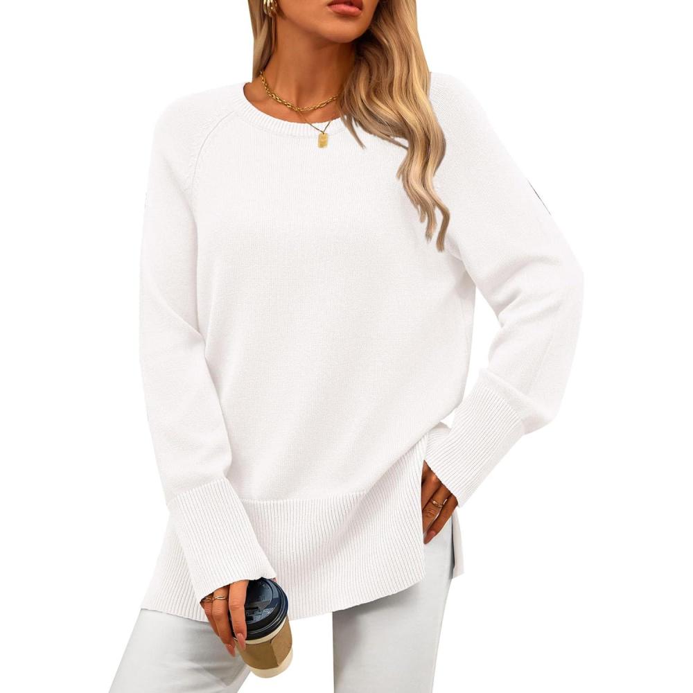 Get up to 50% off on PRETTYGARDEN Women’s Knit Spring Sweaters Long Sleeve Pullover Crewneck Split Hem Loose Oversized Tunic Fall Sweater Top(White) styles during our spring sale event.