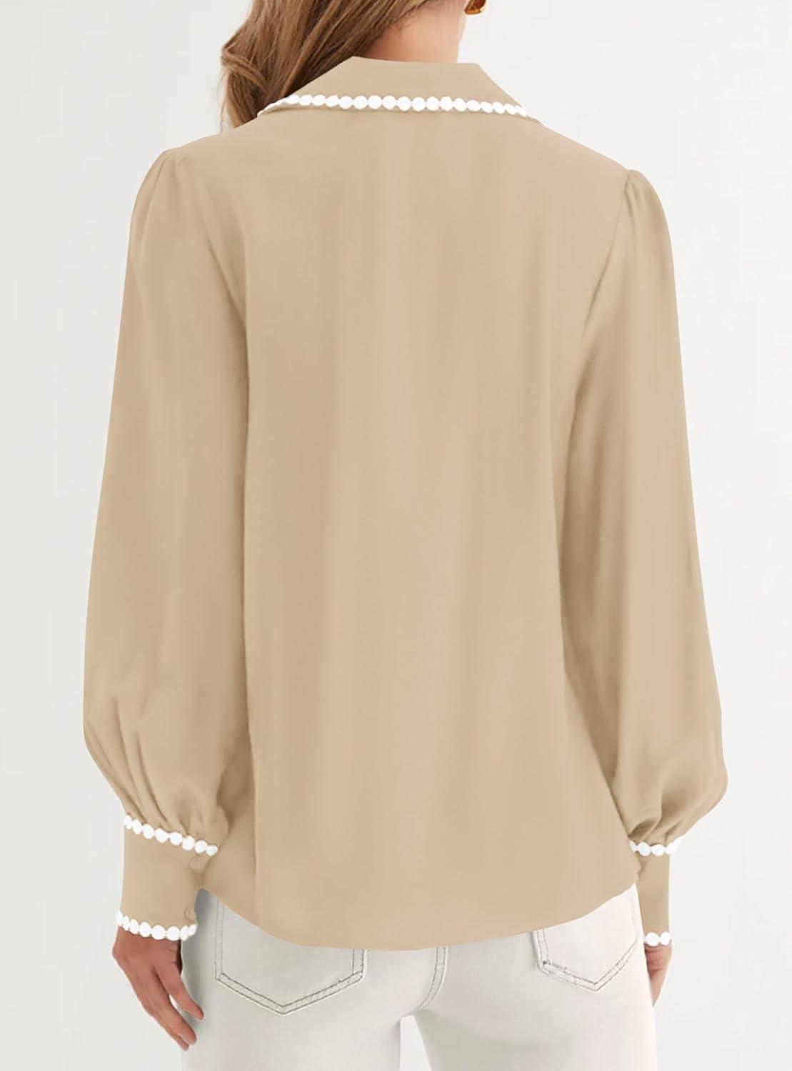 PRETTYGARDEN Womens Long Sleeve Button Down Shirts 2025 Trendy V Neck Loose Fit Fall Tops Collared Dressy Casual Blouses(Khaki)