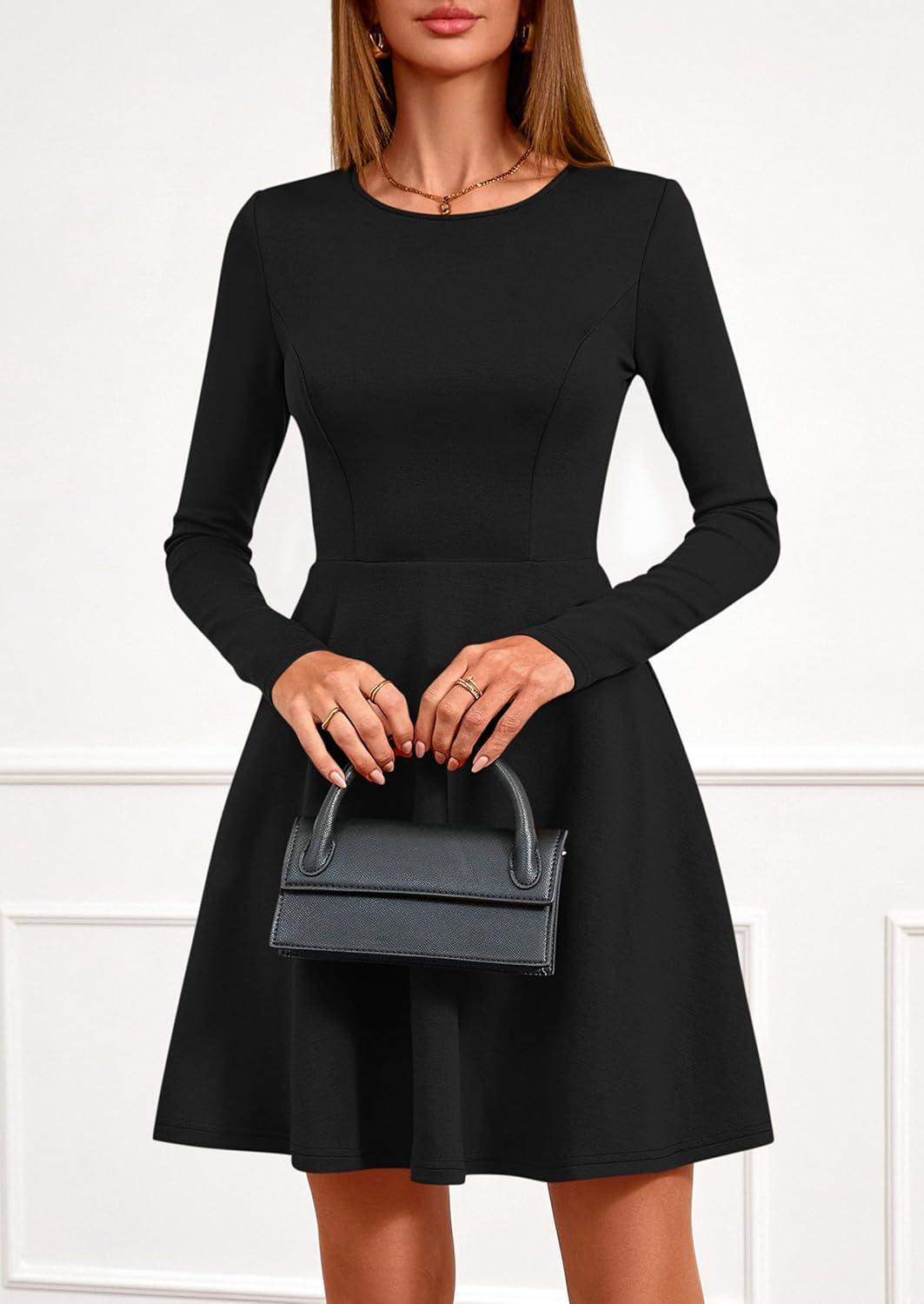 PRETTYGARDEN Womens Long Sleeve Cocktail Mini Dress 2025 Fall Crew Neck A Line Homecoming Party Short Dresses Elegant Classy(Black)