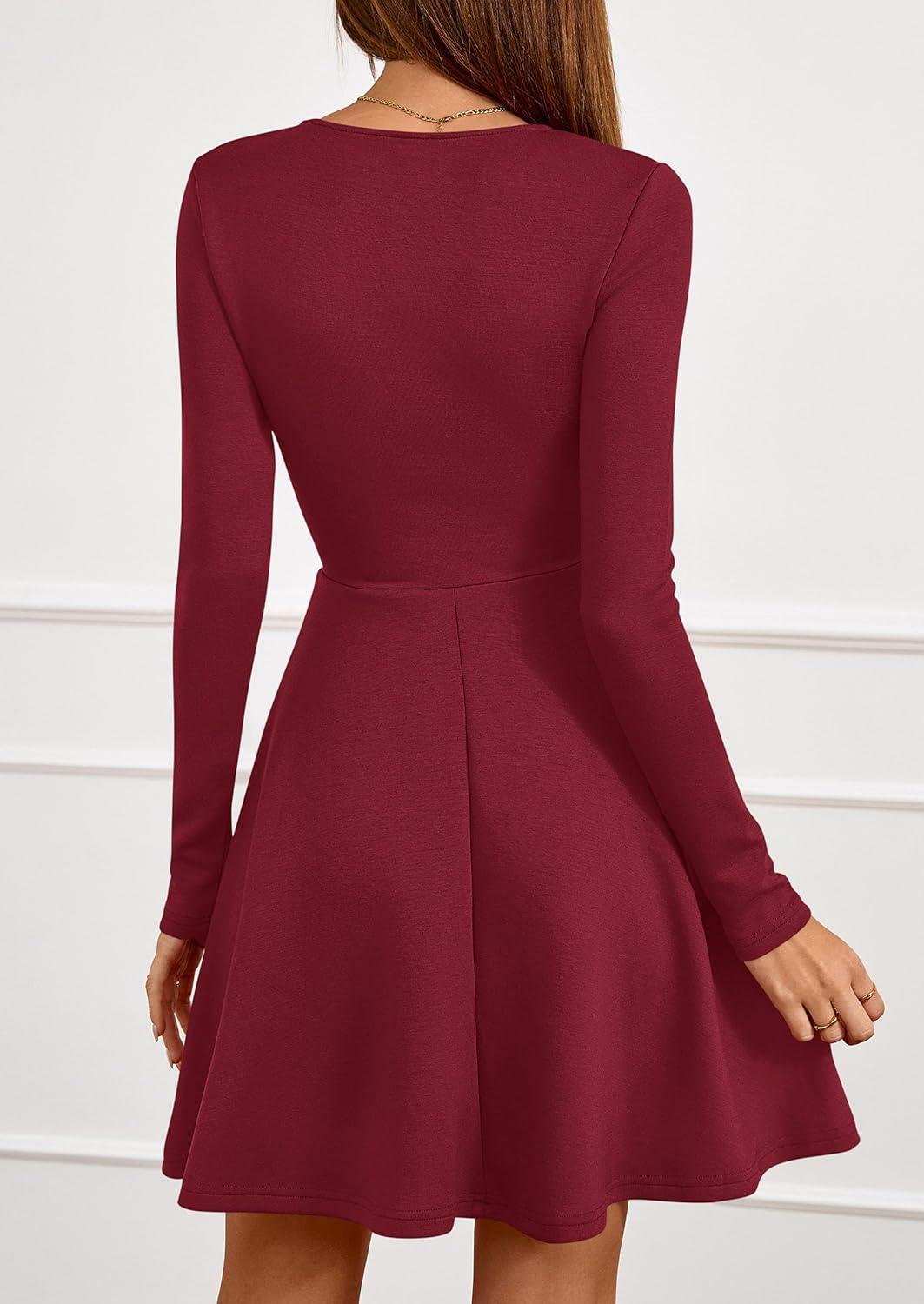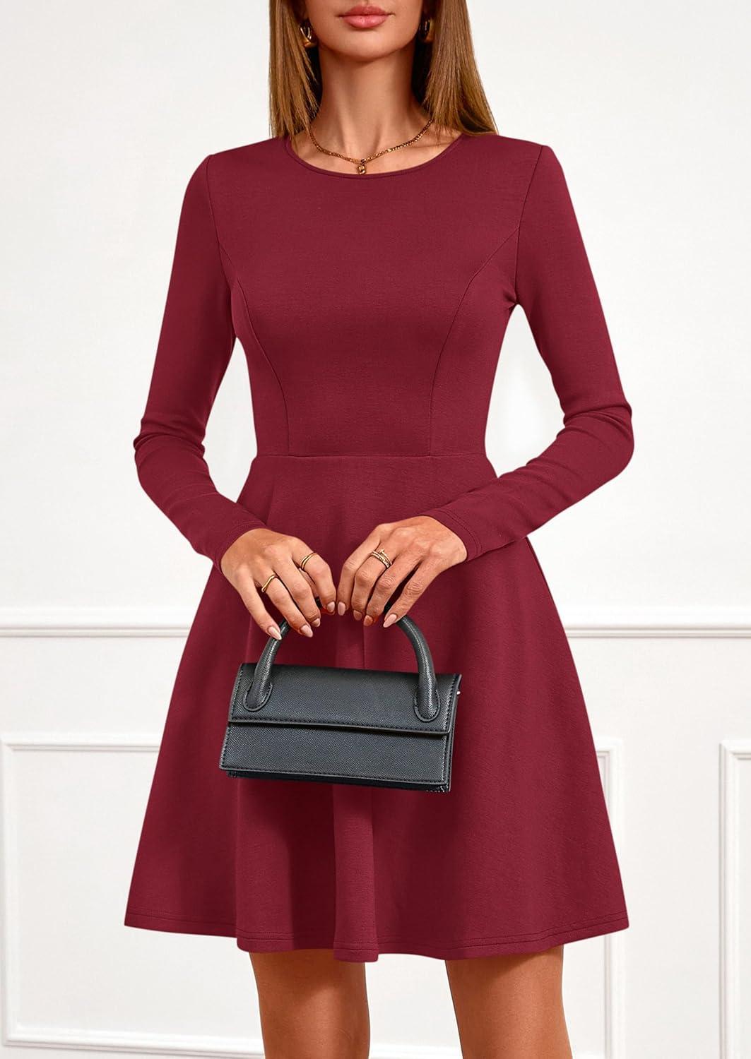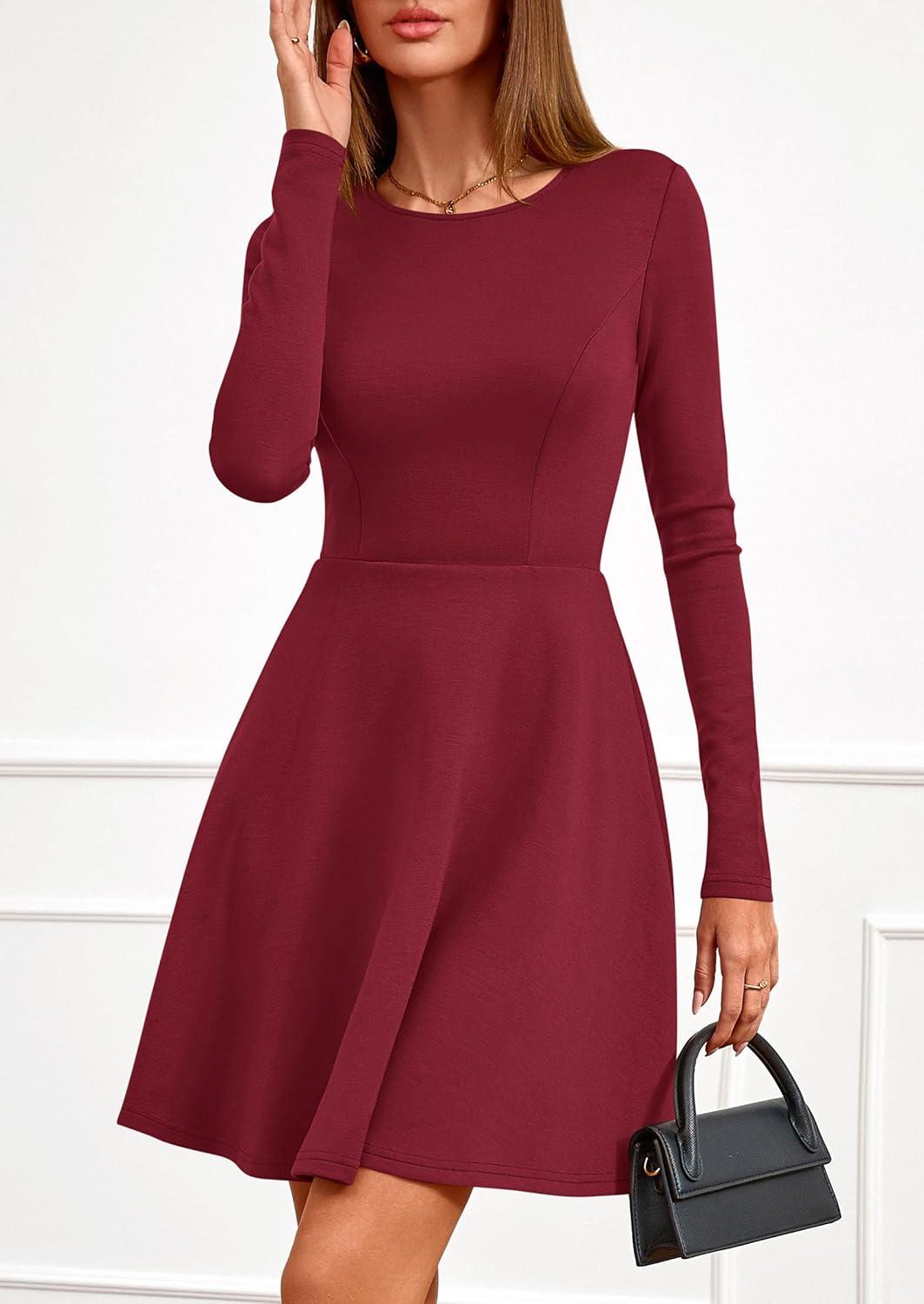 PRETTYGARDEN Womens Long Sleeve Cocktail Mini Dress 2025 Fall Crew Neck A Line Homecoming Party Short Dresses Elegant Classy(Wine Red)