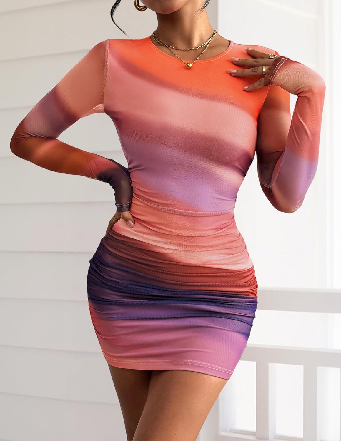 Get the PRETTYGARDEN Women’s Mini Dress Fall Outfits 2025 Trendy Tie Dye Print Long Sleeve Homecoming Club Party Bodycon Dresses(Multicolour Print) you want at a price you can afford with our markdown sale.