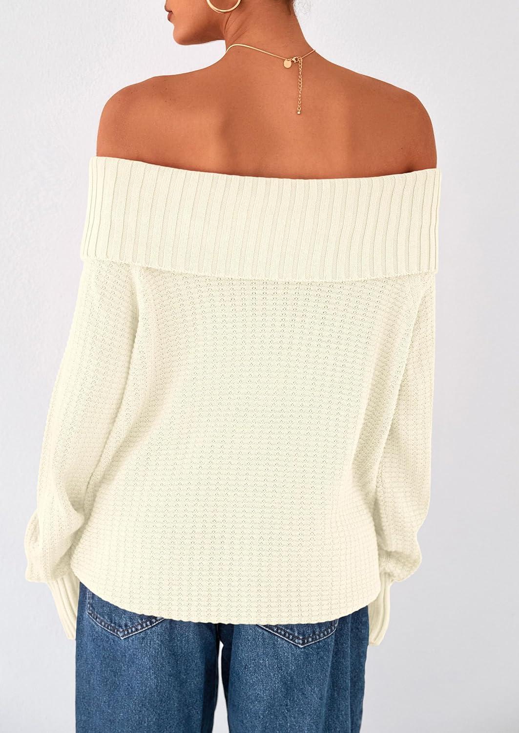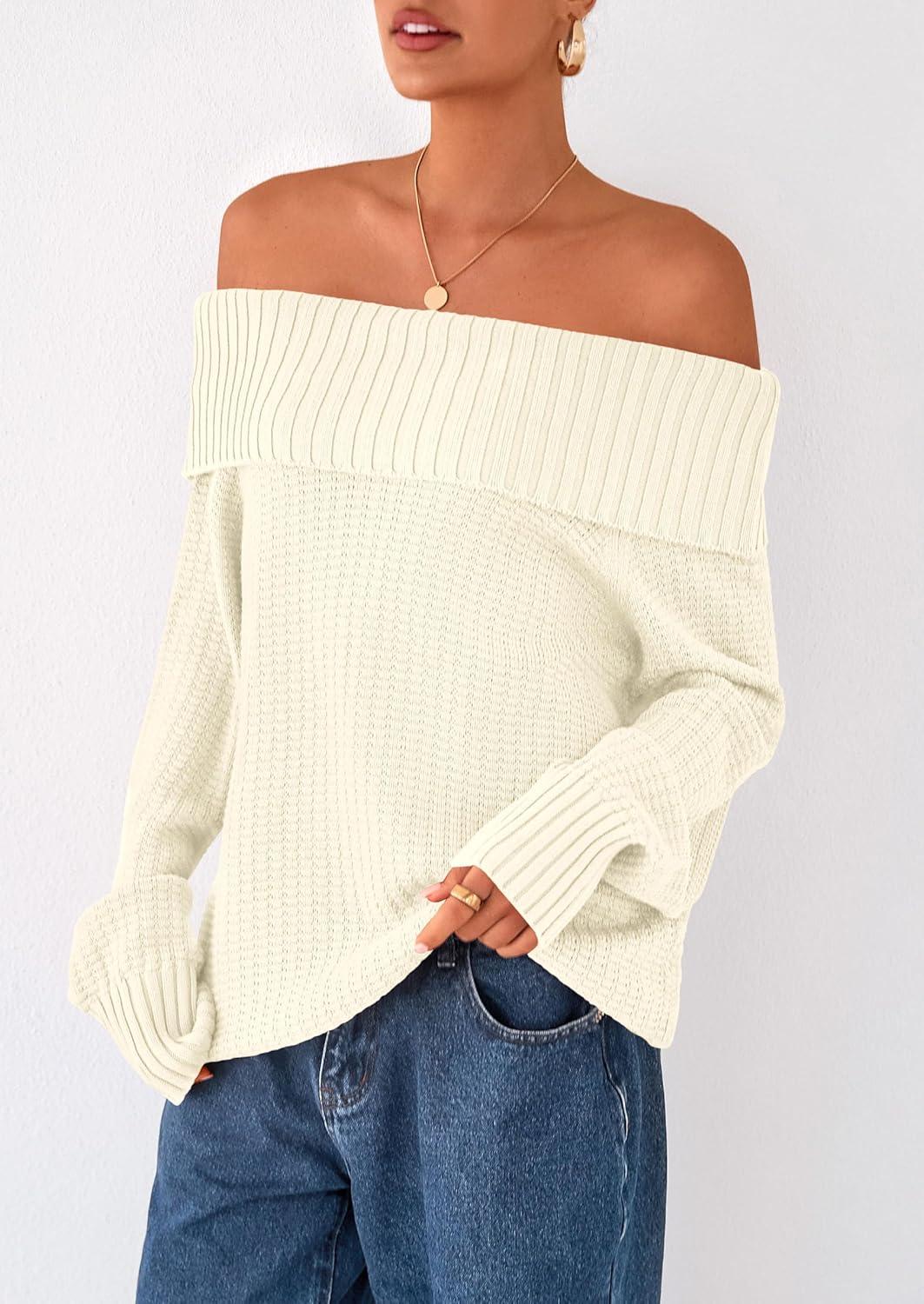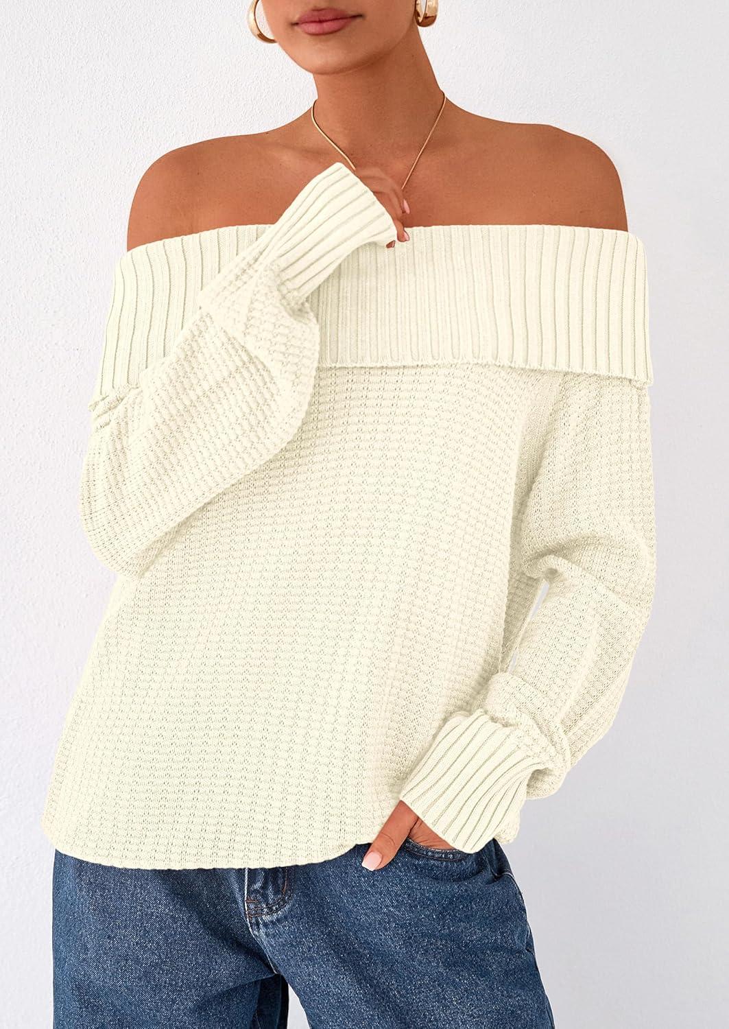 PRETTYGARDEN Womens Off The Shoulder Sweater Long Sleeve Tops Loose Knit Pullover Sweaters Fashion Fall Clothes 2025(White)