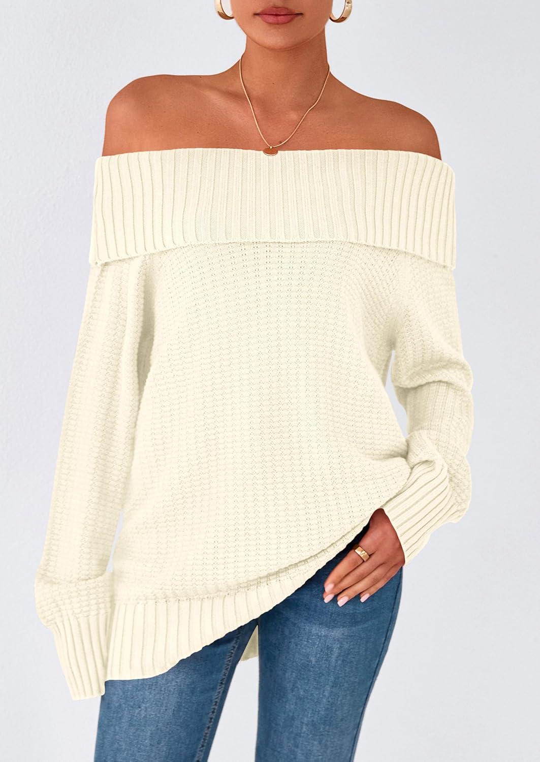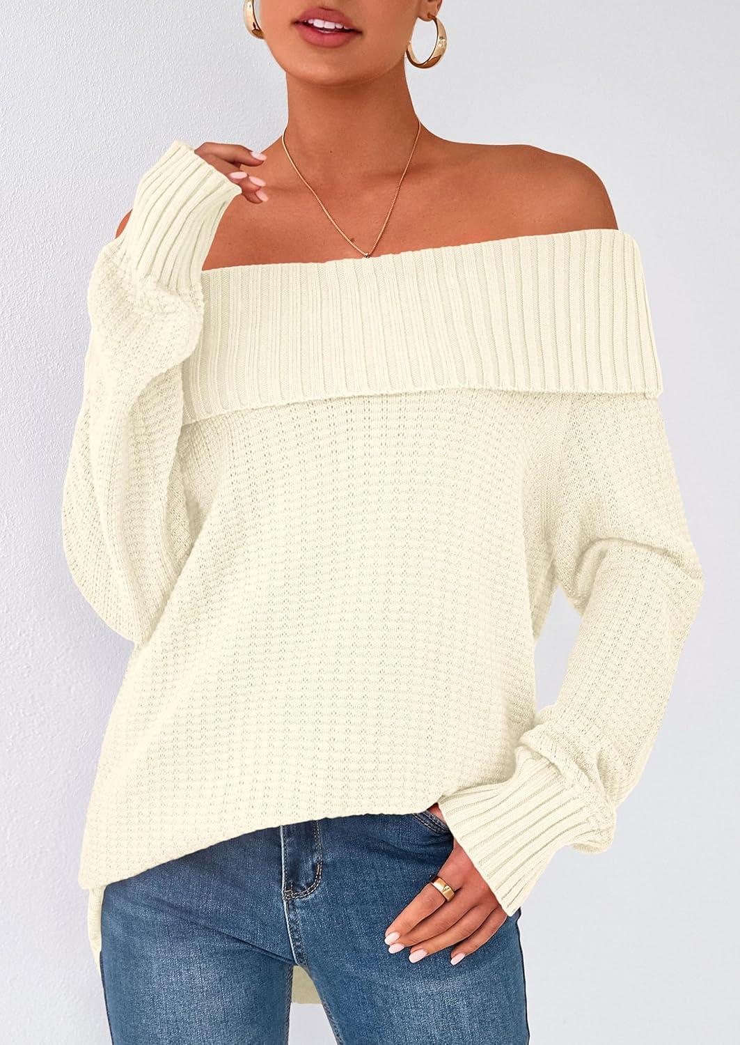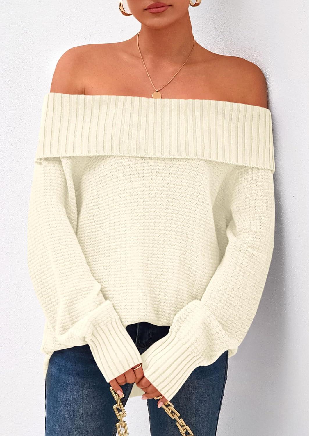 PRETTYGARDEN Womens Off The Shoulder Sweater Long Sleeve Tops Loose Knit Pullover Sweaters Fashion Fall Clothes 2025(White)