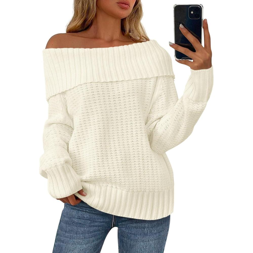Get the PRETTYGARDEN Womens Off The Shoulder Sweater Long Sleeve Tops Loose Knit Pullover Sweaters Fashion Fall Clothes 2025(White) you want at a price you can afford with our markdown sale.