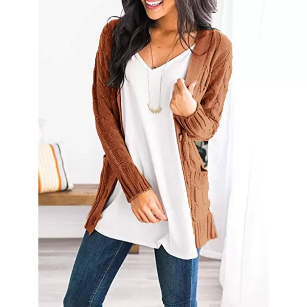 PRETTYGARDEN Womens Open Front Cardigan Sweaters Fashion Button Down Cable Knit Chunky Outwear CoatsBrown