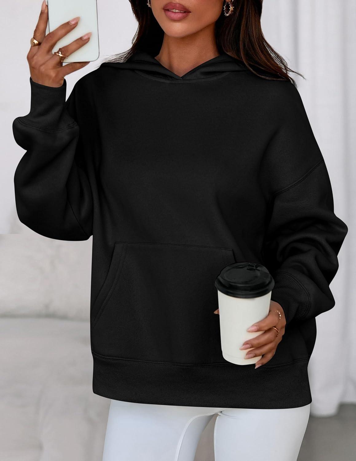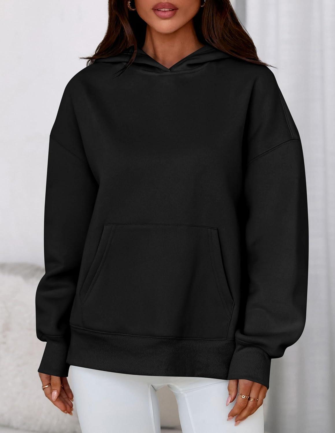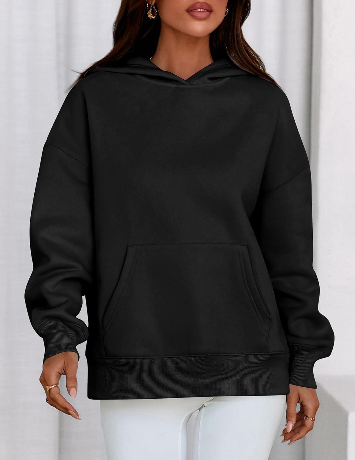 PRETTYGARDEN Womens Oversized Hoodies Fleece Sweatshirts Fall Fashion 2025 Long Sleeve Pullover Tops Y2k Winter Clothes(Black)