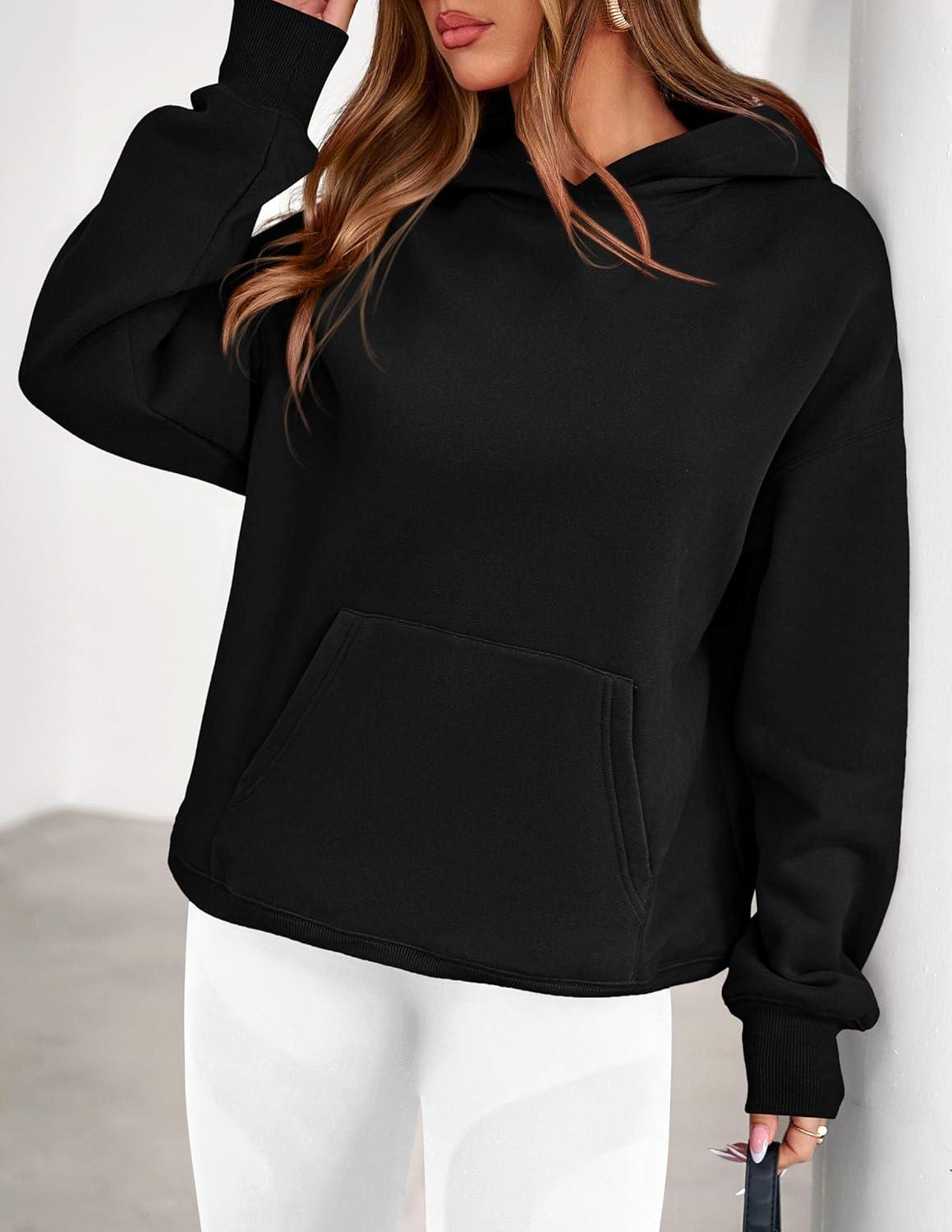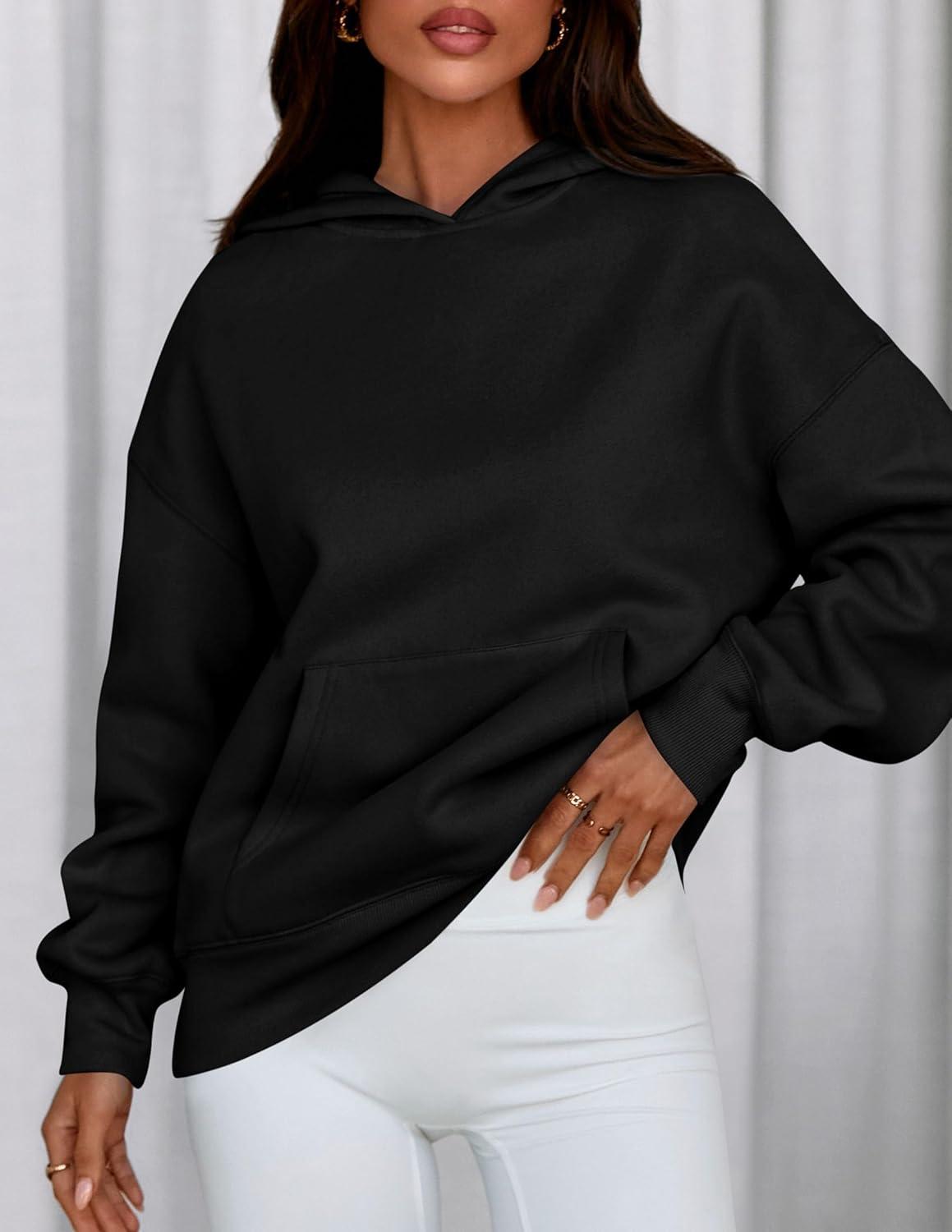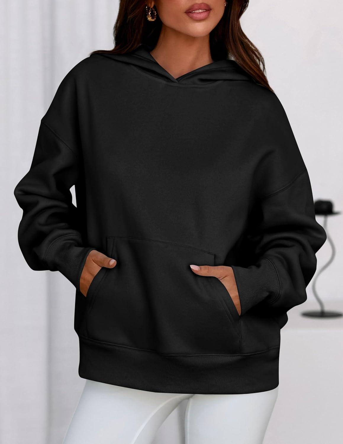 PRETTYGARDEN Womens Oversized Hoodies Fleece Sweatshirts Fall Fashion 2025 Long Sleeve Pullover Tops Y2k Winter Clothes(Black)