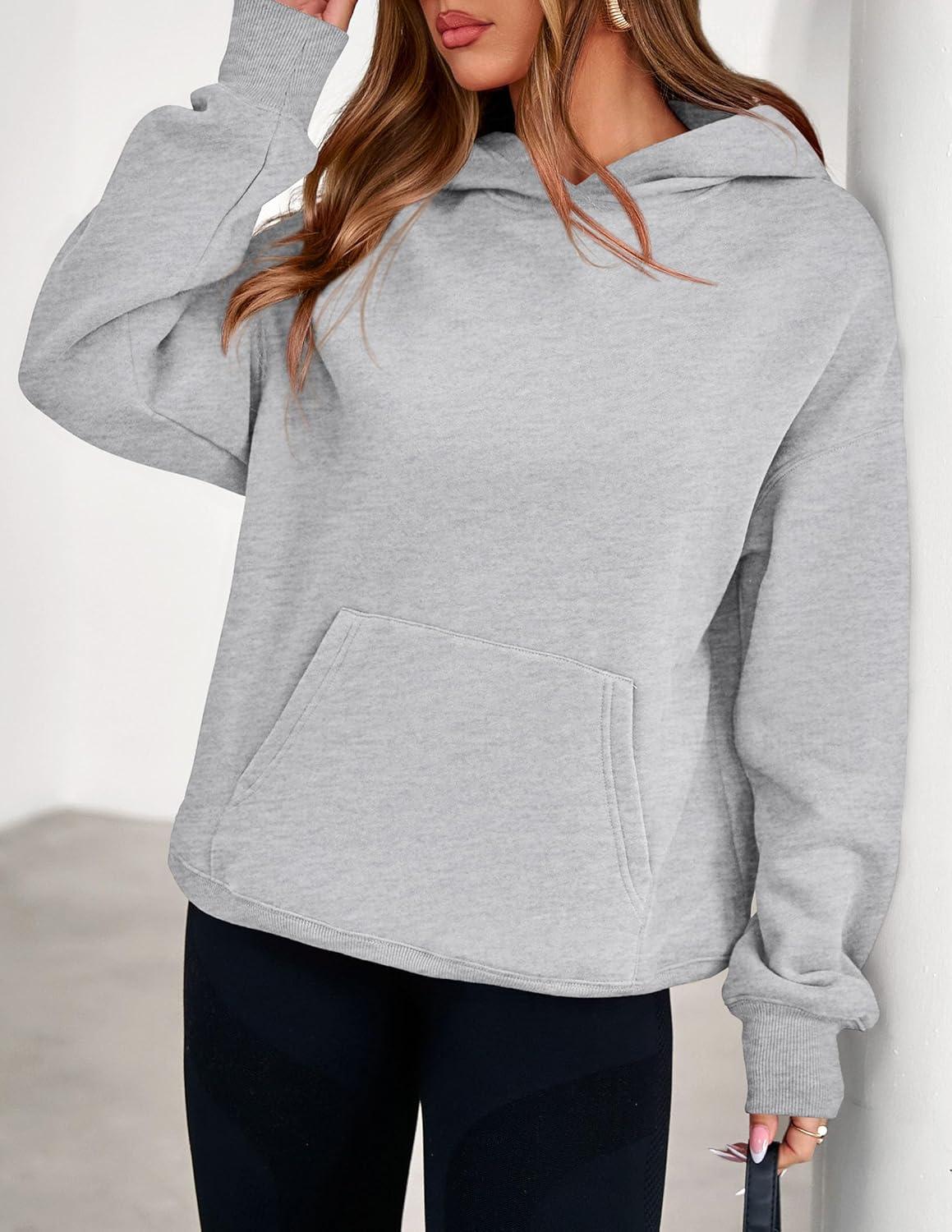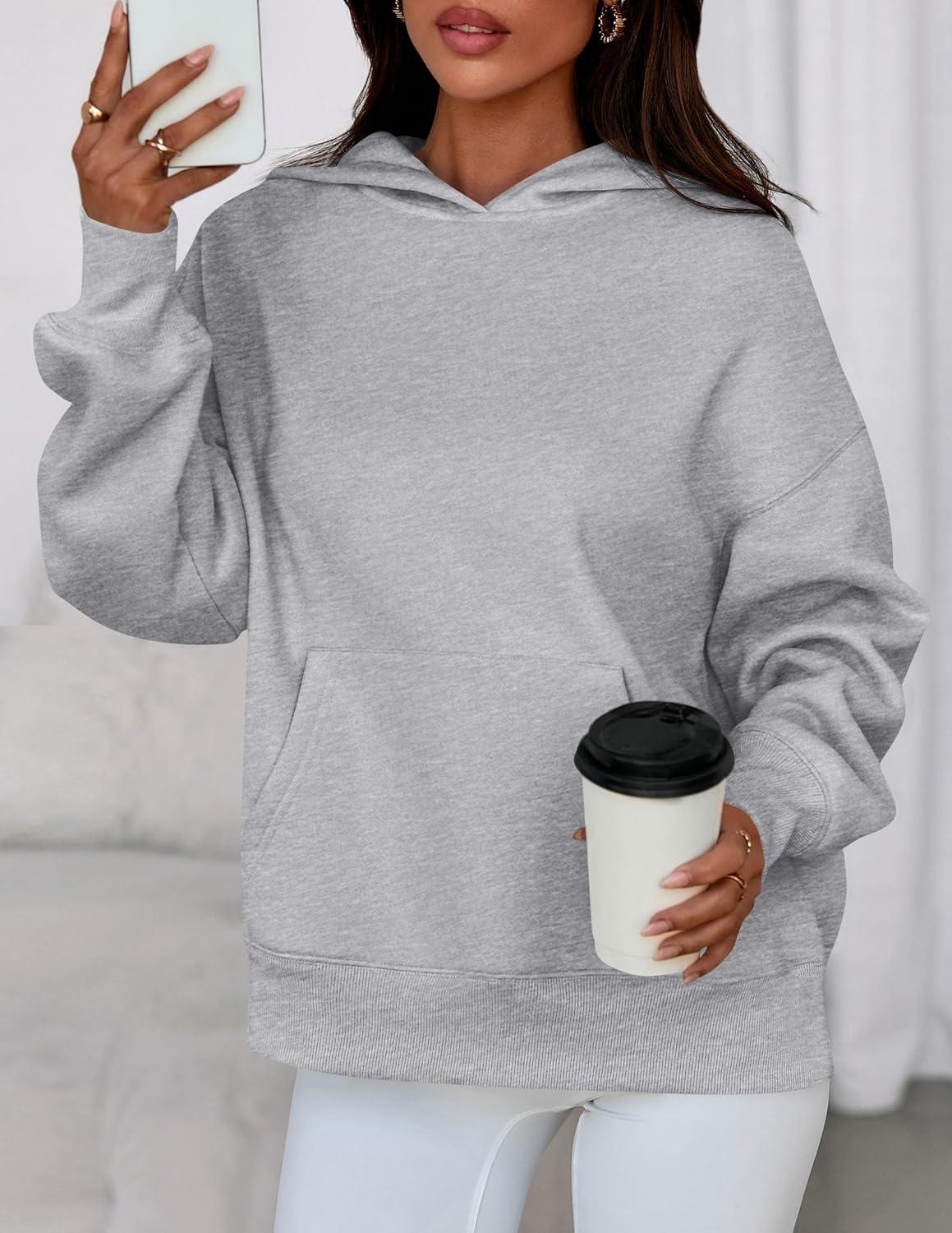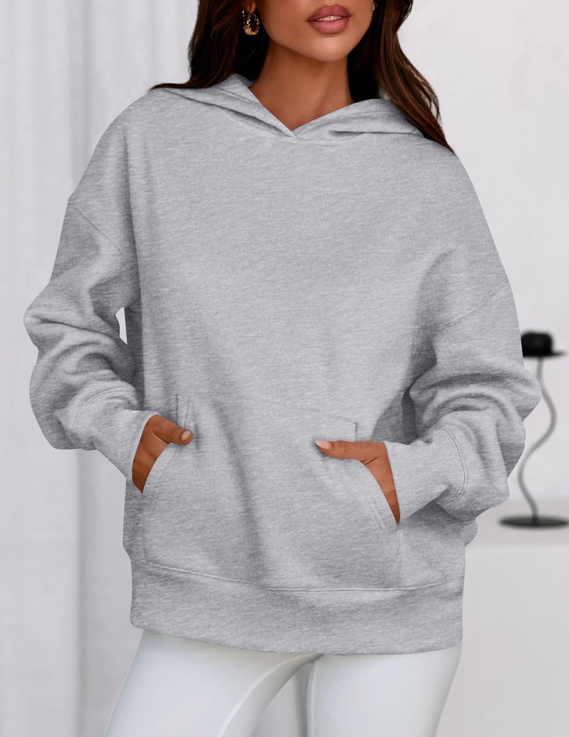 PRETTYGARDEN Womens Oversized Hoodies Fleece Sweatshirts Fall Fashion 2025 Long Sleeve Pullover Tops Y2k Winter Clothes(Grey)