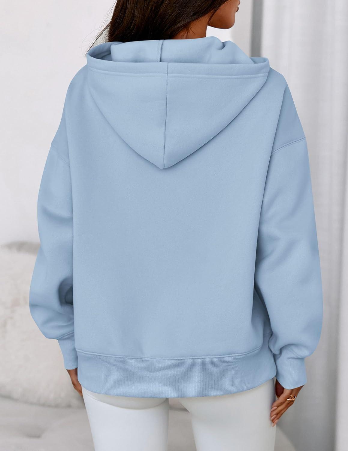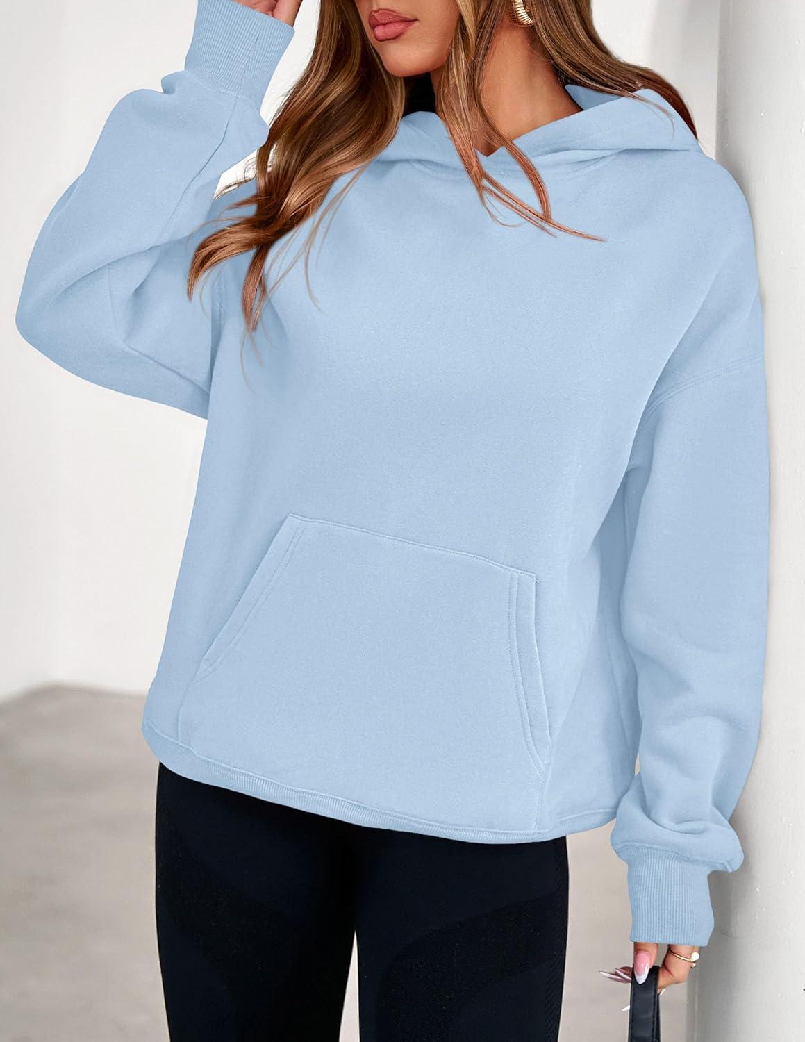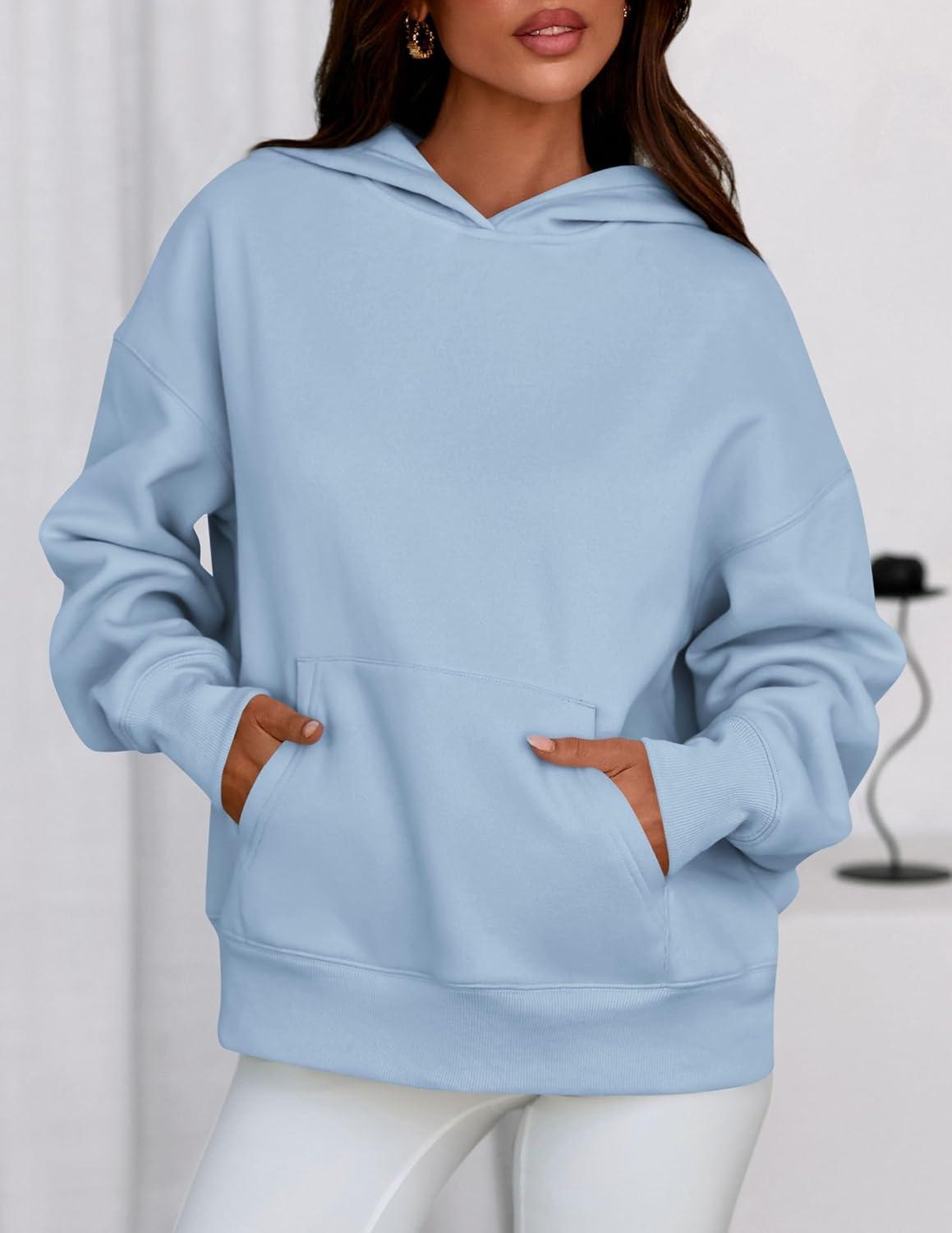PRETTYGARDEN Womens Oversized Hoodies Fleece Sweatshirts Fall Fashion 2025 Long Sleeve Pullover Tops Y2k Winter Clothes(Light Blue)
