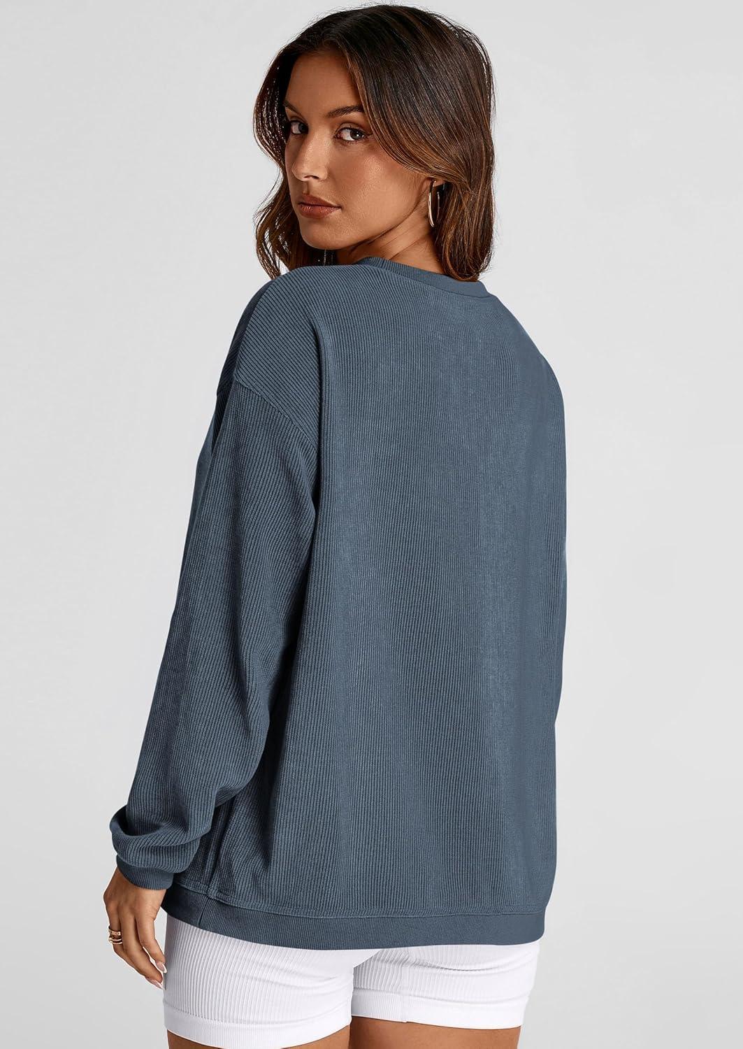 PRETTYGARDEN Women’s Oversized Sweatshirt 2025 Fall Fashion Clothes Ribbed Corduroy Long Sleeve Going Out Pullover Tops(Grey Blue)
