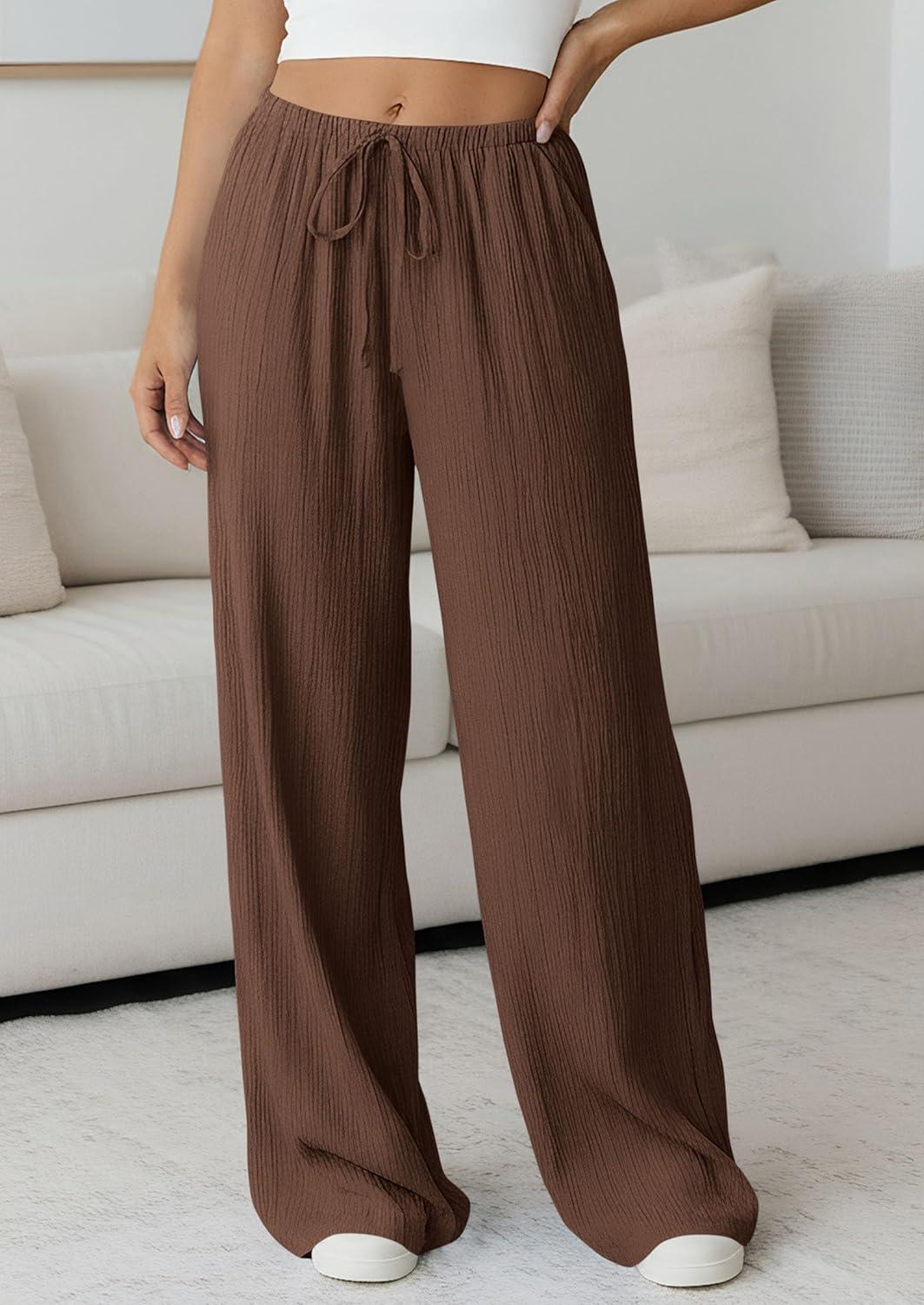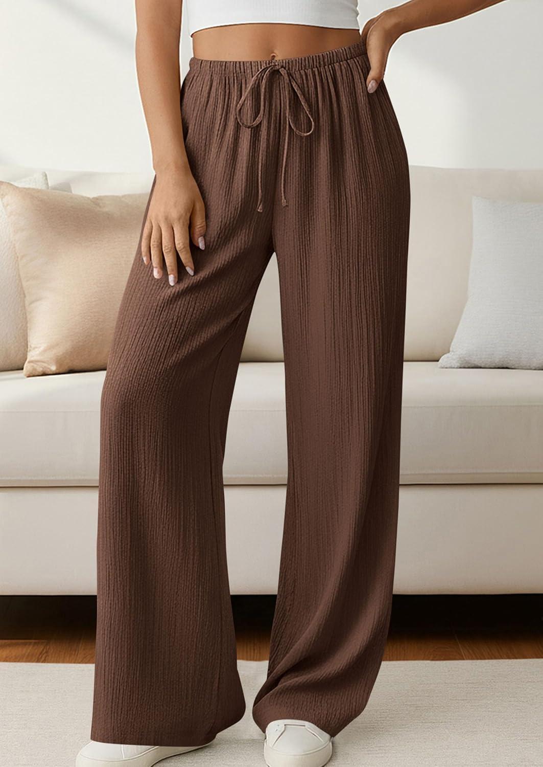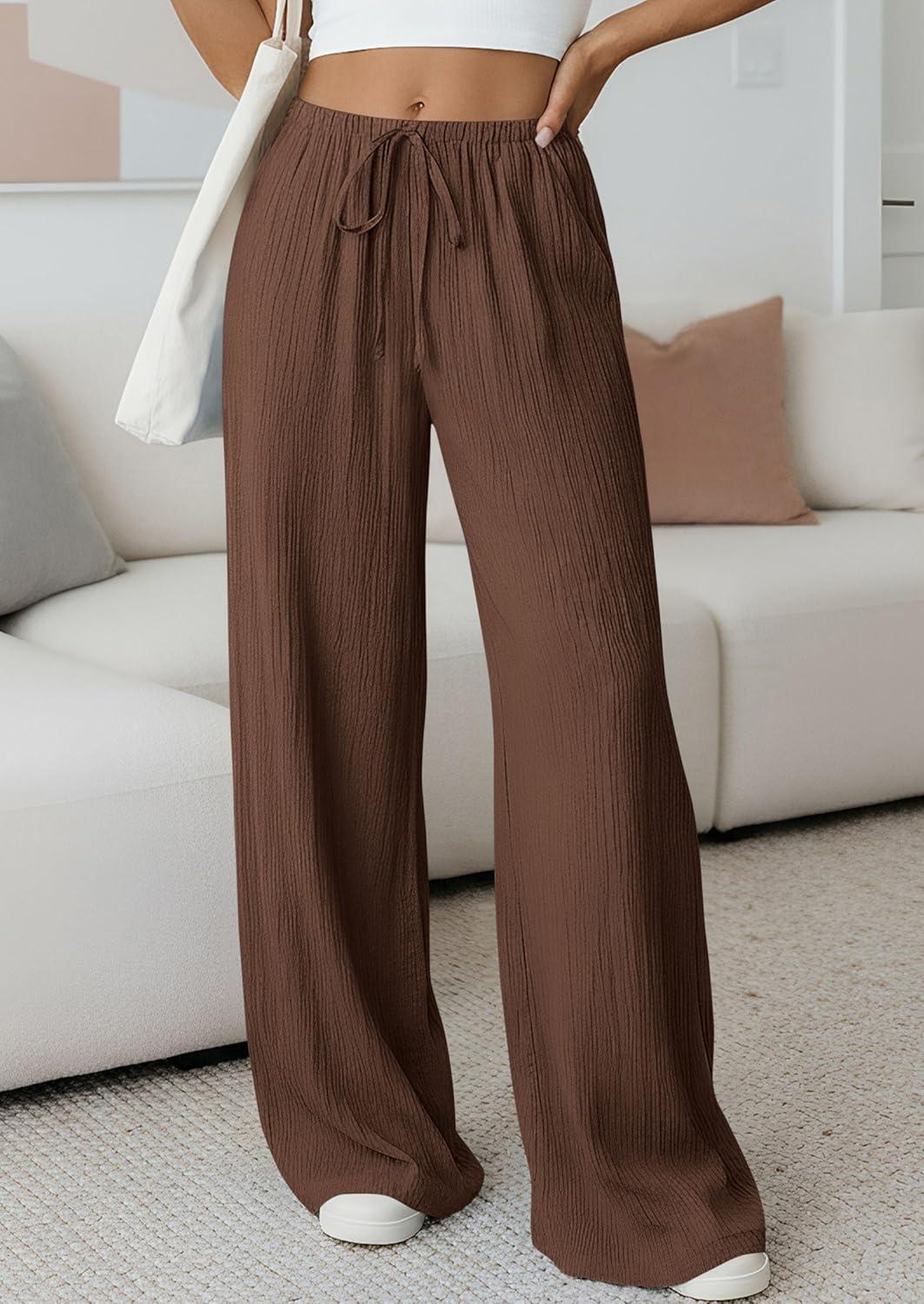 PRETTYGARDEN Womens Palazzo Pants Summer Fashion 2026 High Waisted Wide Leg Drawstring Flowy Beach Trousers with Pockets(Brown)