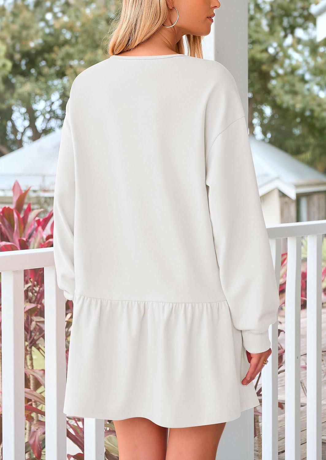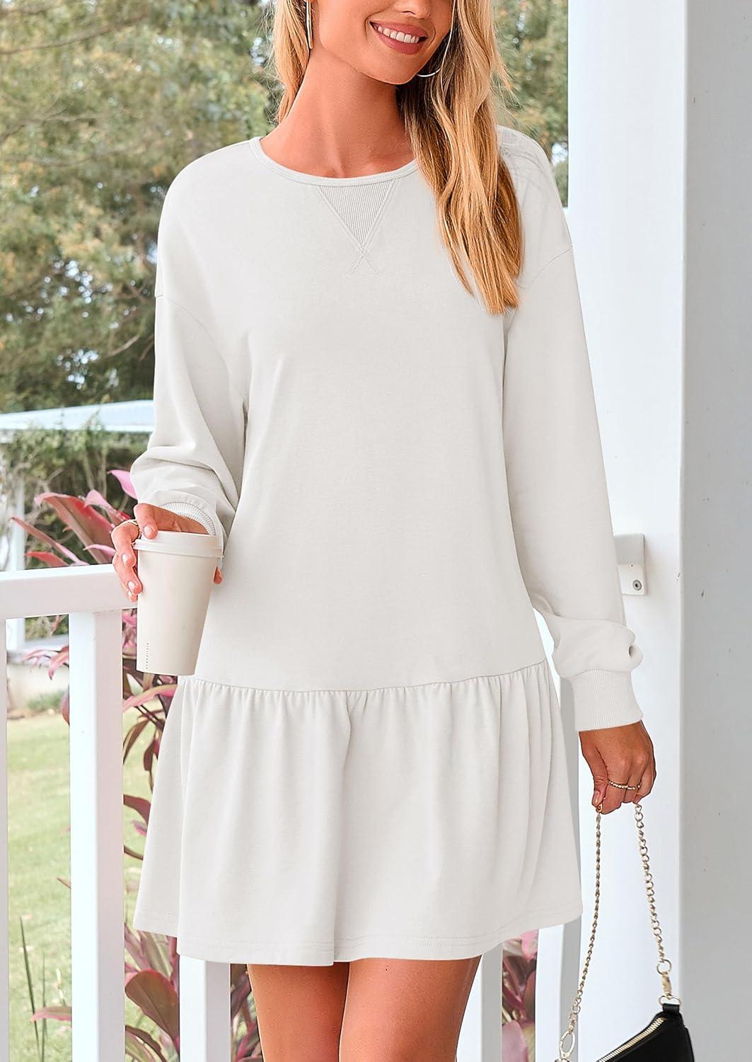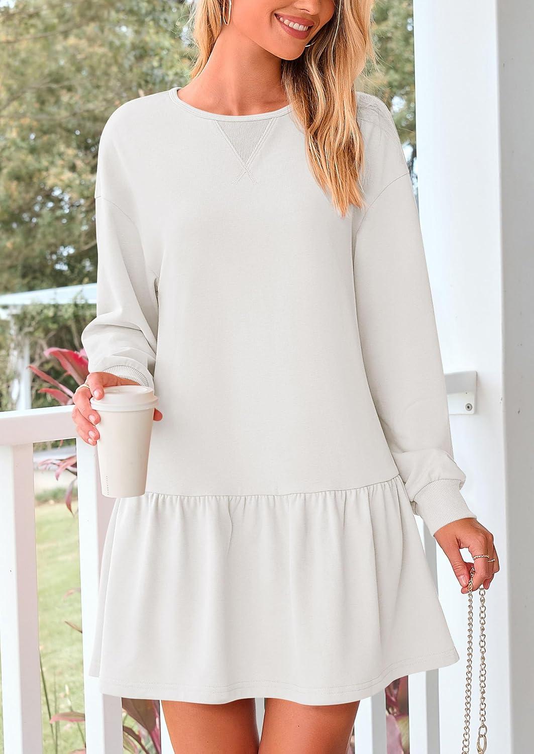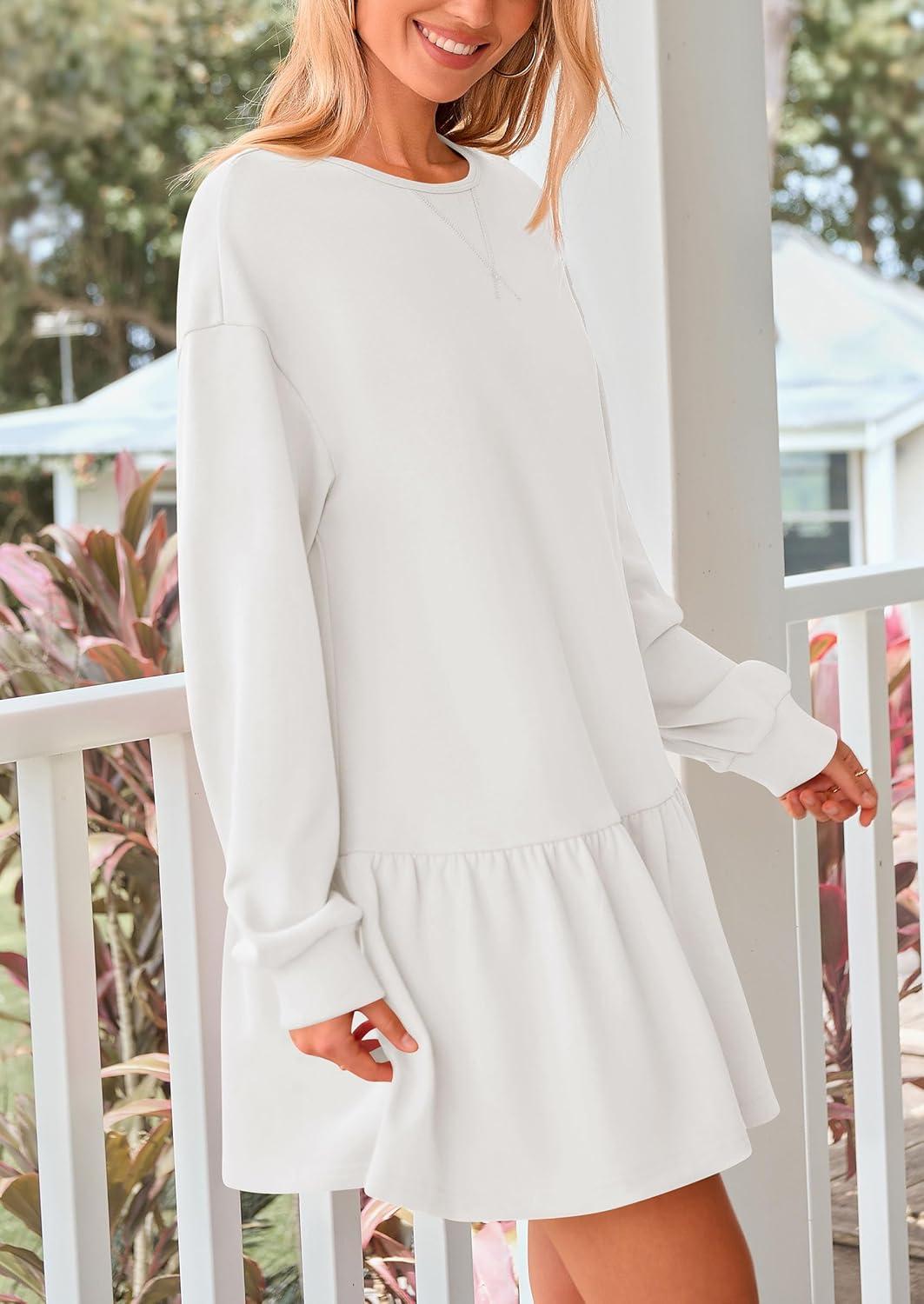 PRETTYGARDEN Womens Patchwork Sweatshirt Dress 2025 Fall Casual Long Sleeve Crewneck Pullover Cute Babydoll Mini Dresses(White)