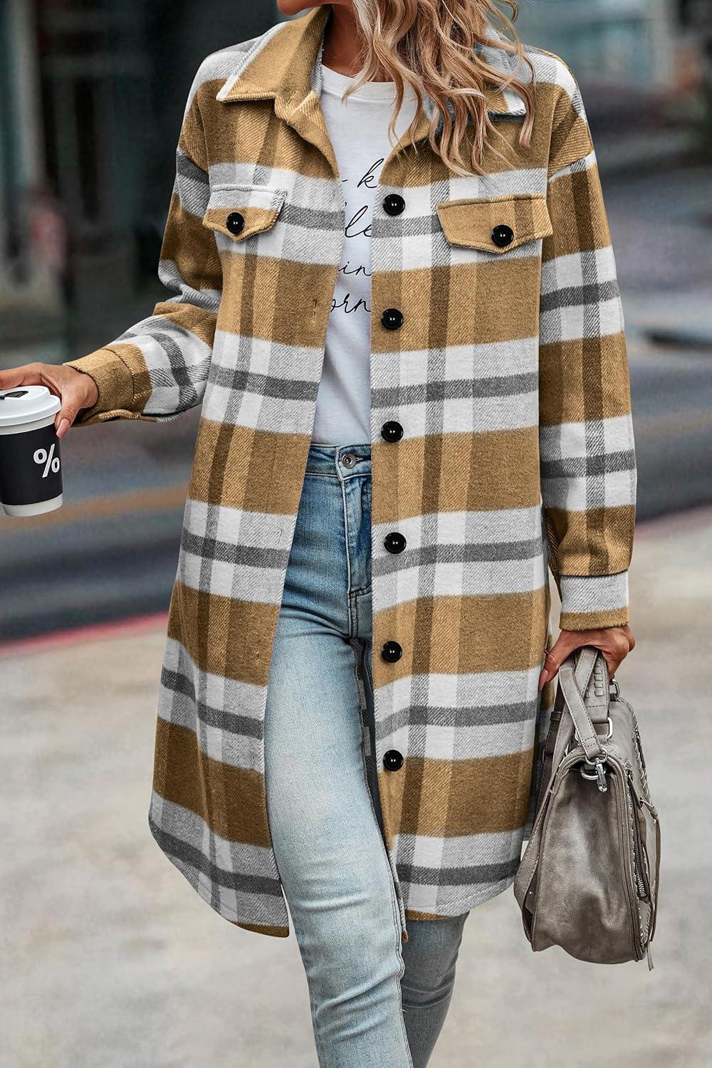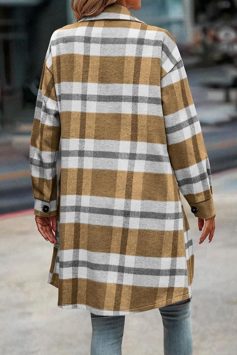 PRETTYGARDEN Womens Plaid Shacket Jacket Fall Fashion 2025 Long Sleeve Button Up Flannel Shirt Winter Clothing Woolen Coats(Plaid Yellow)