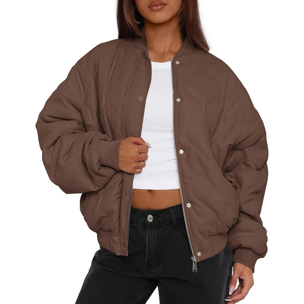 PRETTYGARDEN Women’s Quilted Bomber Jacket Fall Fashion 2025 Lightweight Cropped Zip up Outerwear Winter Puffer Coats Pockets(Brown)