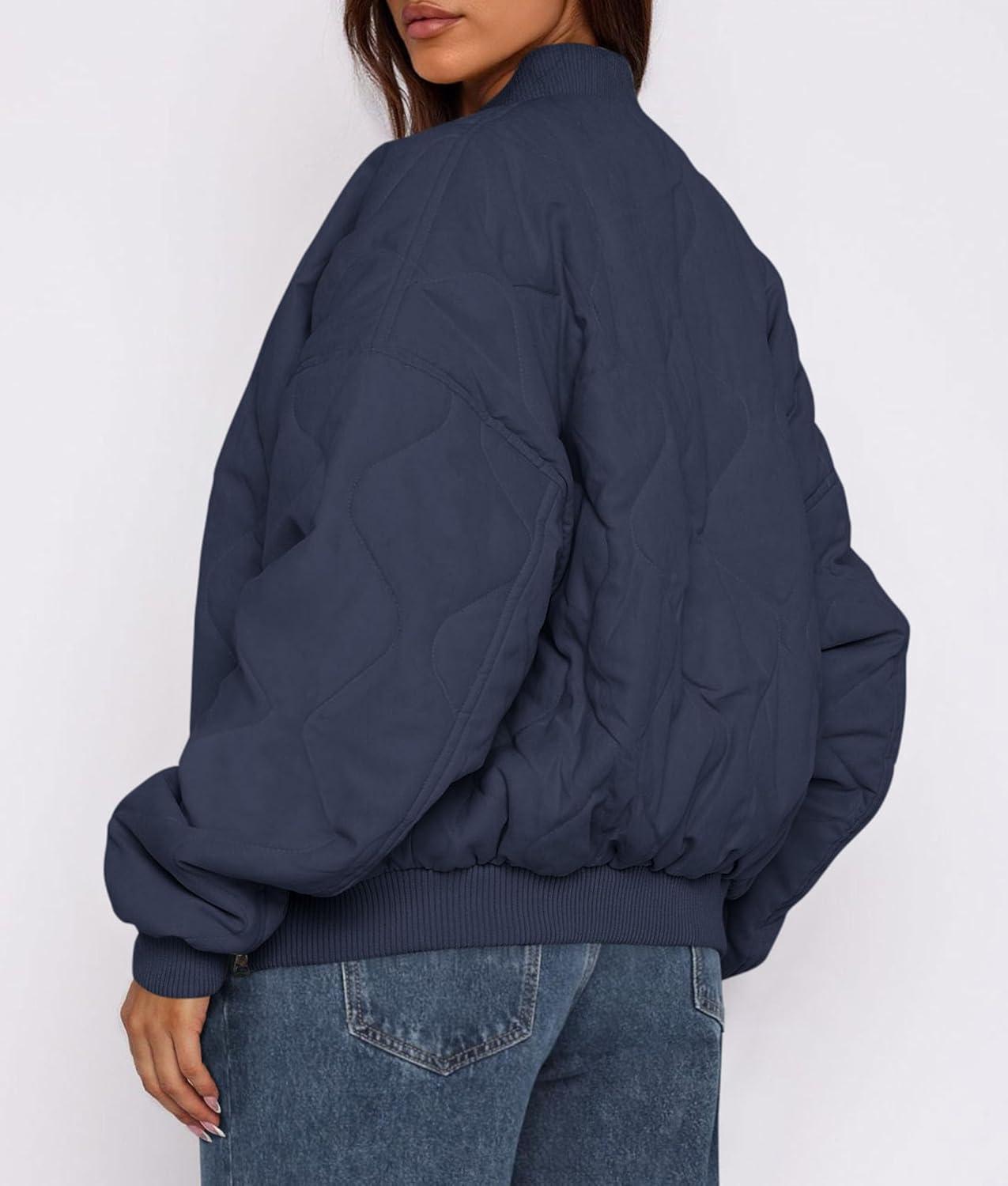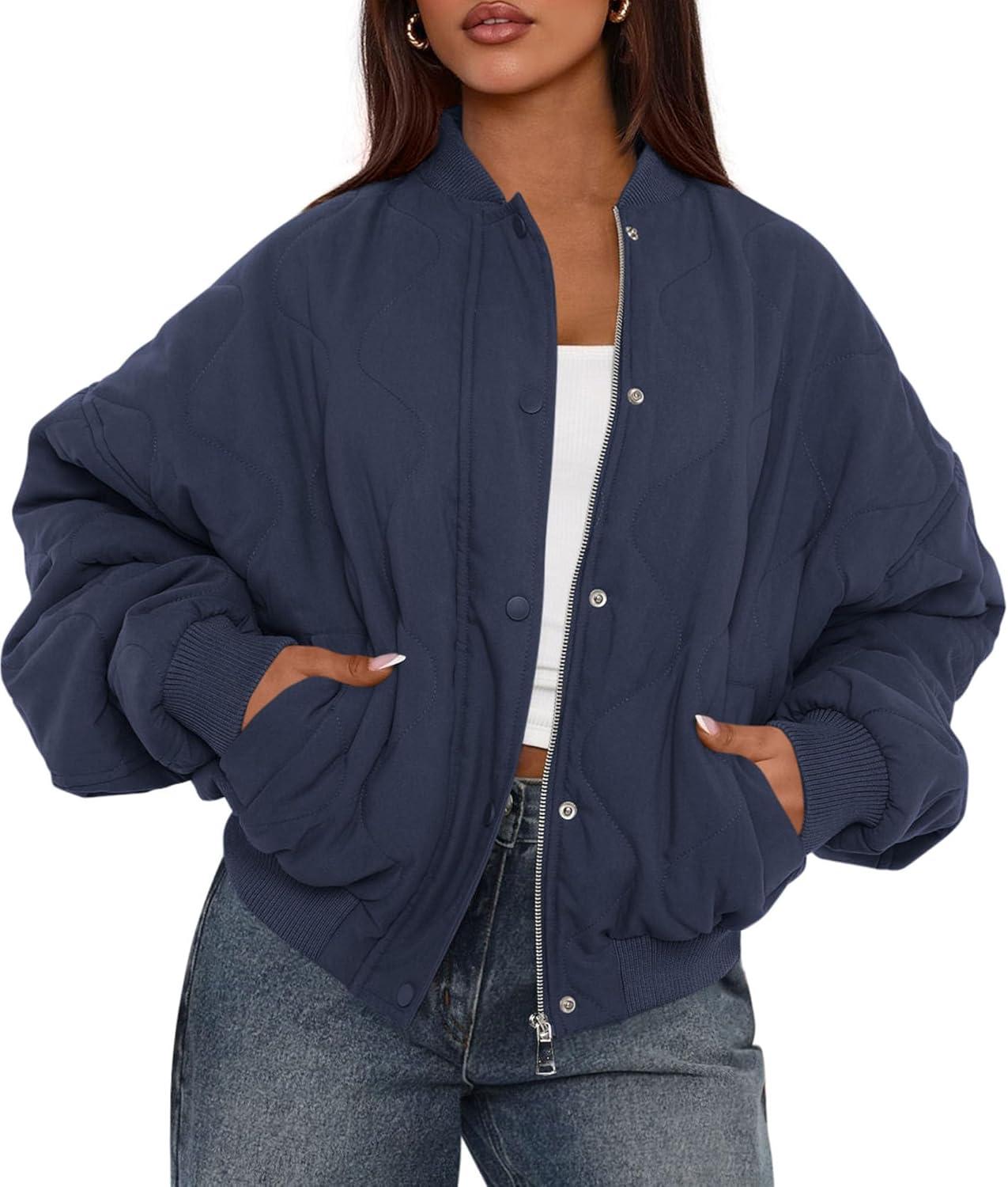 PRETTYGARDEN Women’s Quilted Bomber Jacket Fall Fashion 2025 Lightweight Cropped Zip up Outerwear Winter Puffer Coats Pockets(Navy Blue)