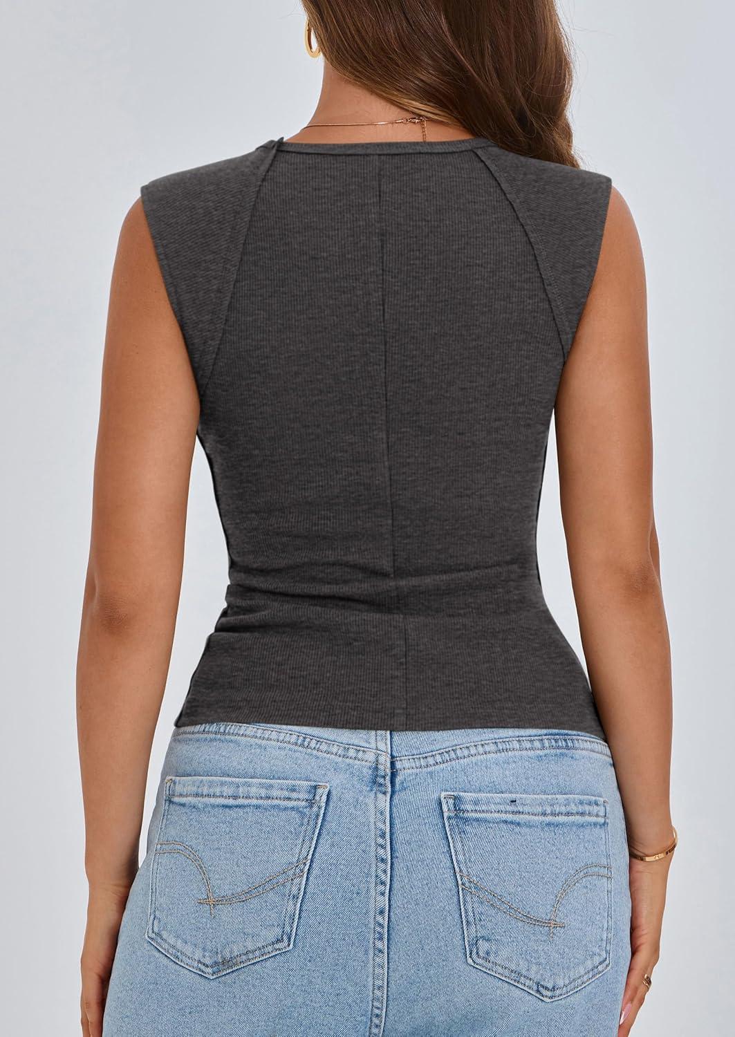 PRETTYGARDEN Women's Ribbed Tank Tops 2025 Summer Cap Sleeve Slim Fitted Knit Basic Casual Tee Shirts Trendy Fashion Clothes(Dark Grey)