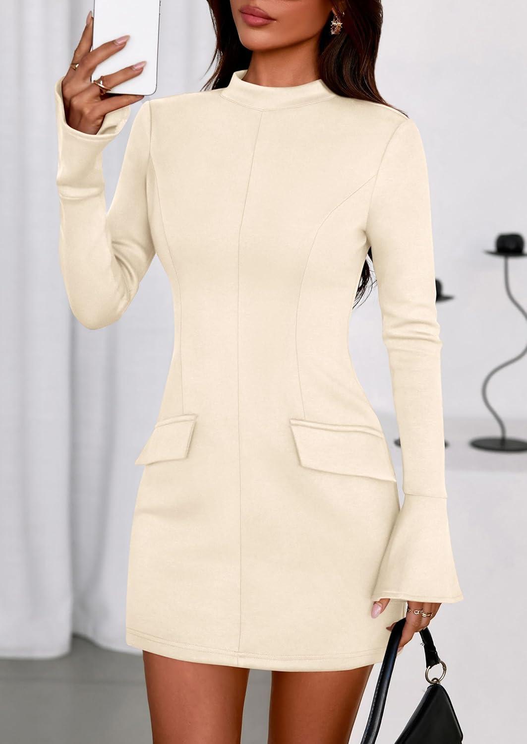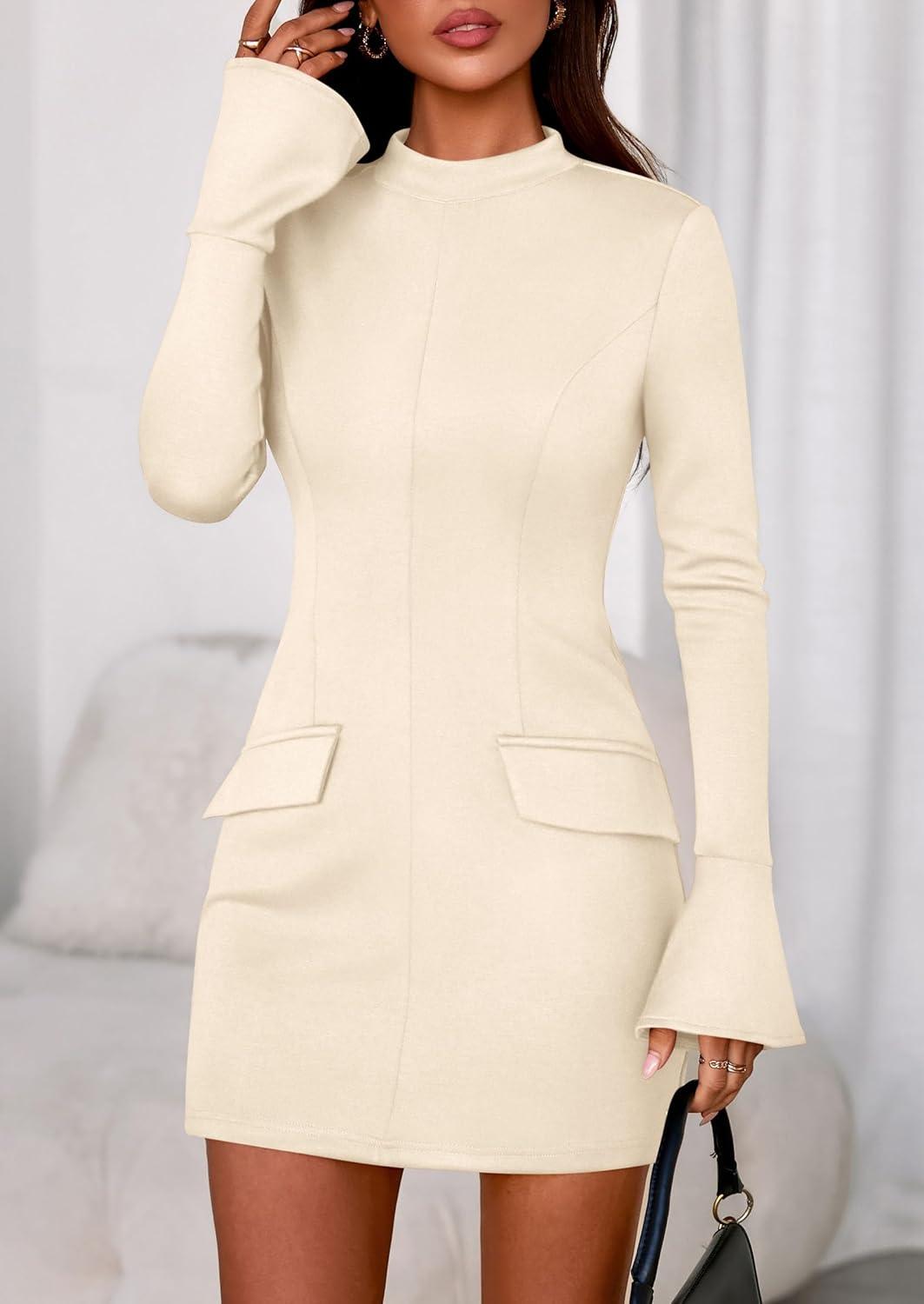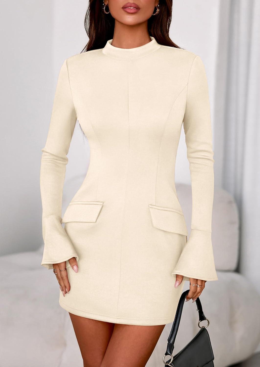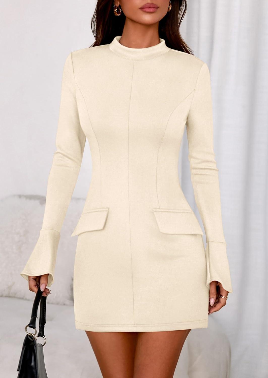 Our clearance event features the best deals on PRETTYGARDEN Womens Short Formal Dresses 2025 Fall Long Sleeve Mock Neck Elegant Cocktail Party Club Bodycon Mini Dress(Beige) and accessories. Shop now!