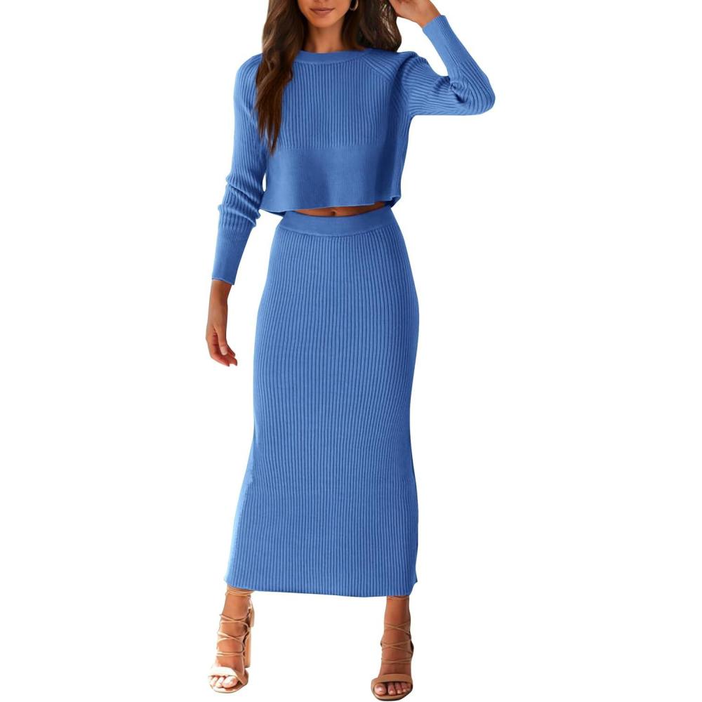 Don’t miss out on our limited-time offer: buy PRETTYGARDEN Women’s Spring Fall 2 Piece Sweater Set Rib Knit Long Sleeve Crop Top Maxi Bodycon Skirt Casual Winter Outfits(Bright Blue), get {accessory} 50% off!