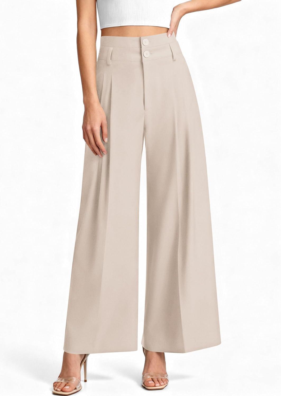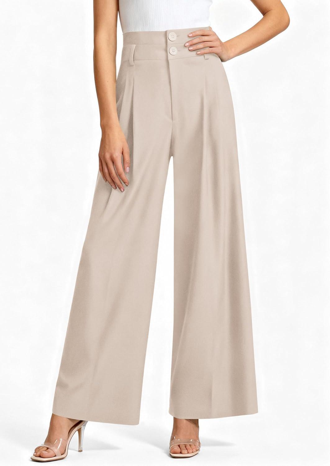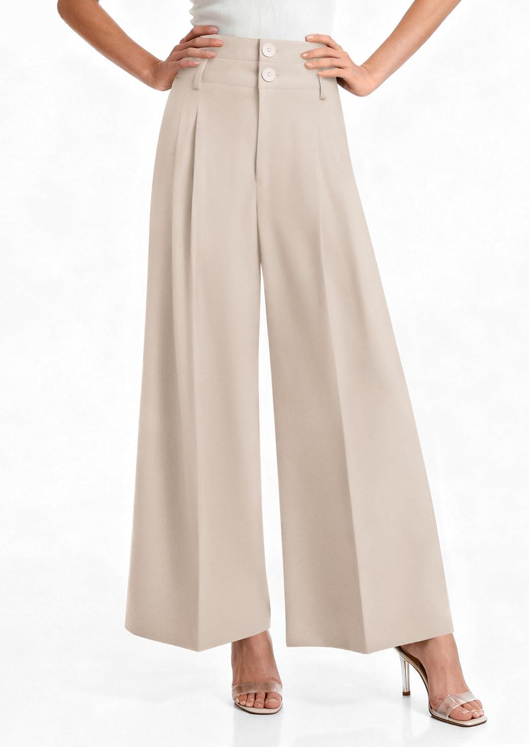 PRETTYGARDEN Womens Spring Wide Leg Palazzo Pants 2026 Trendy Loose Button High Waist Pleated Work Business Casual Trousers(Beige)