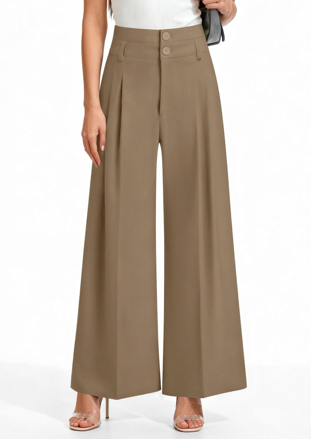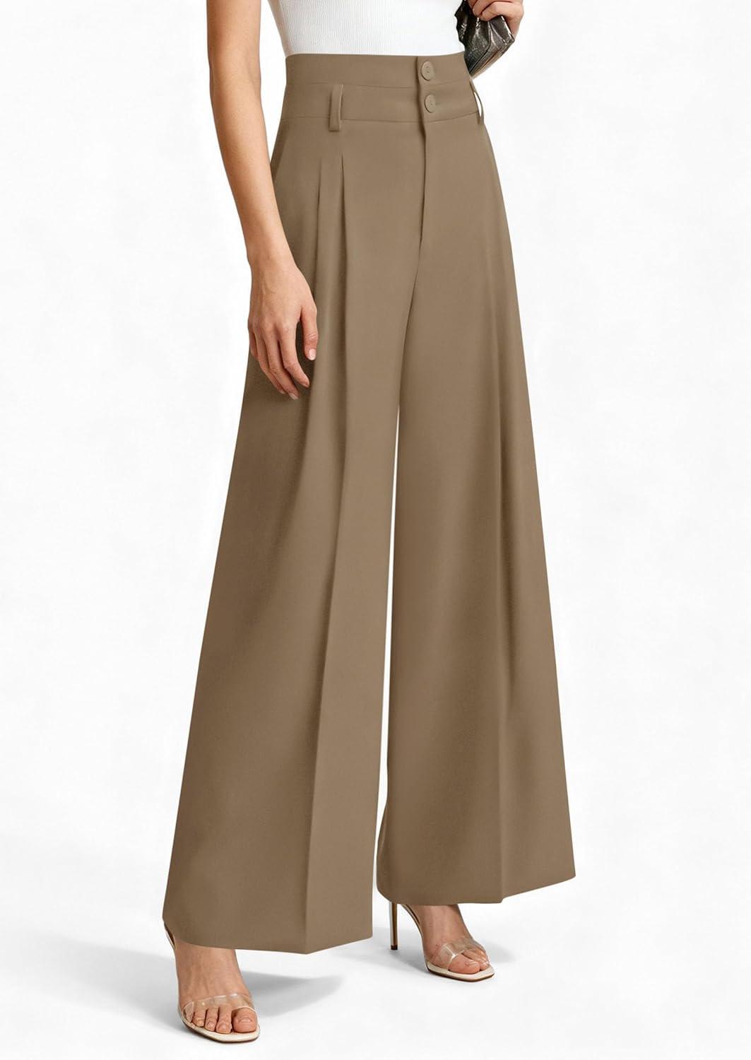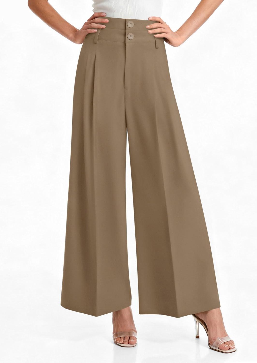 PRETTYGARDEN Womens Spring Wide Leg Palazzo Pants 2026 Trendy Loose Button High Waist Pleated Work Business Casual Trousers(Brown)