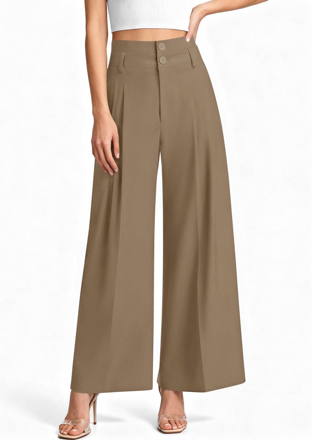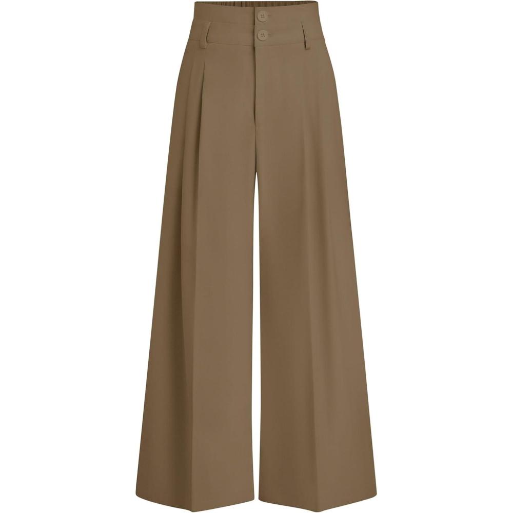 PRETTYGARDEN Womens Spring Wide Leg Palazzo Pants 2026 Trendy Loose Button High Waist Pleated Work Business Casual Trousers(Khaki)
