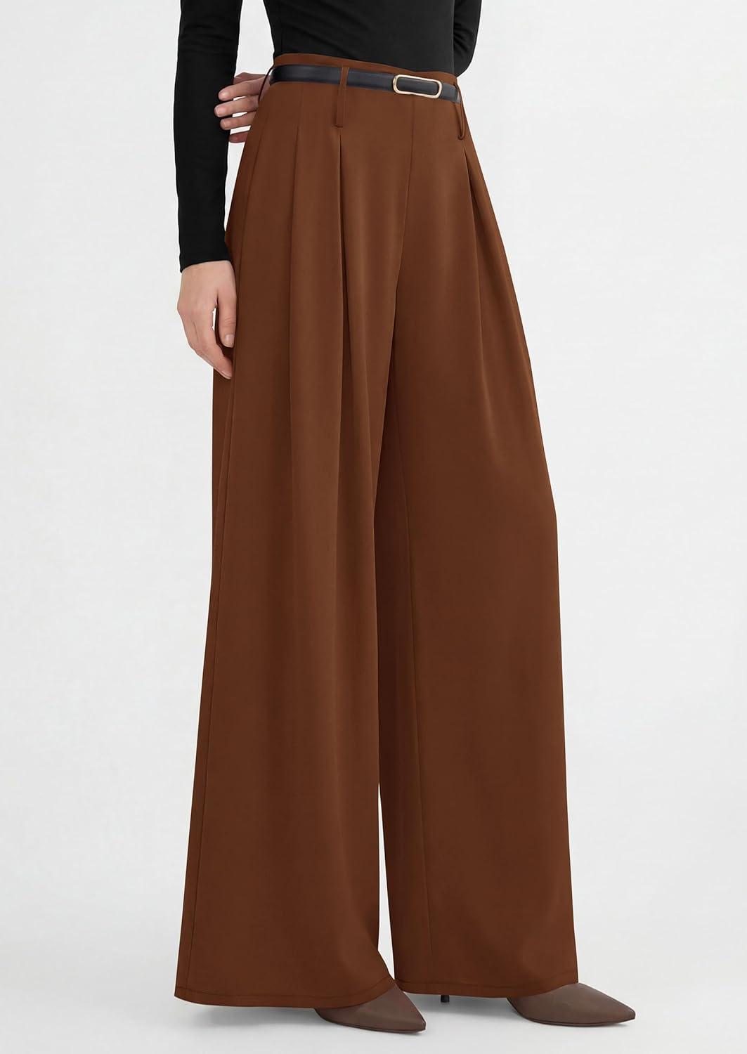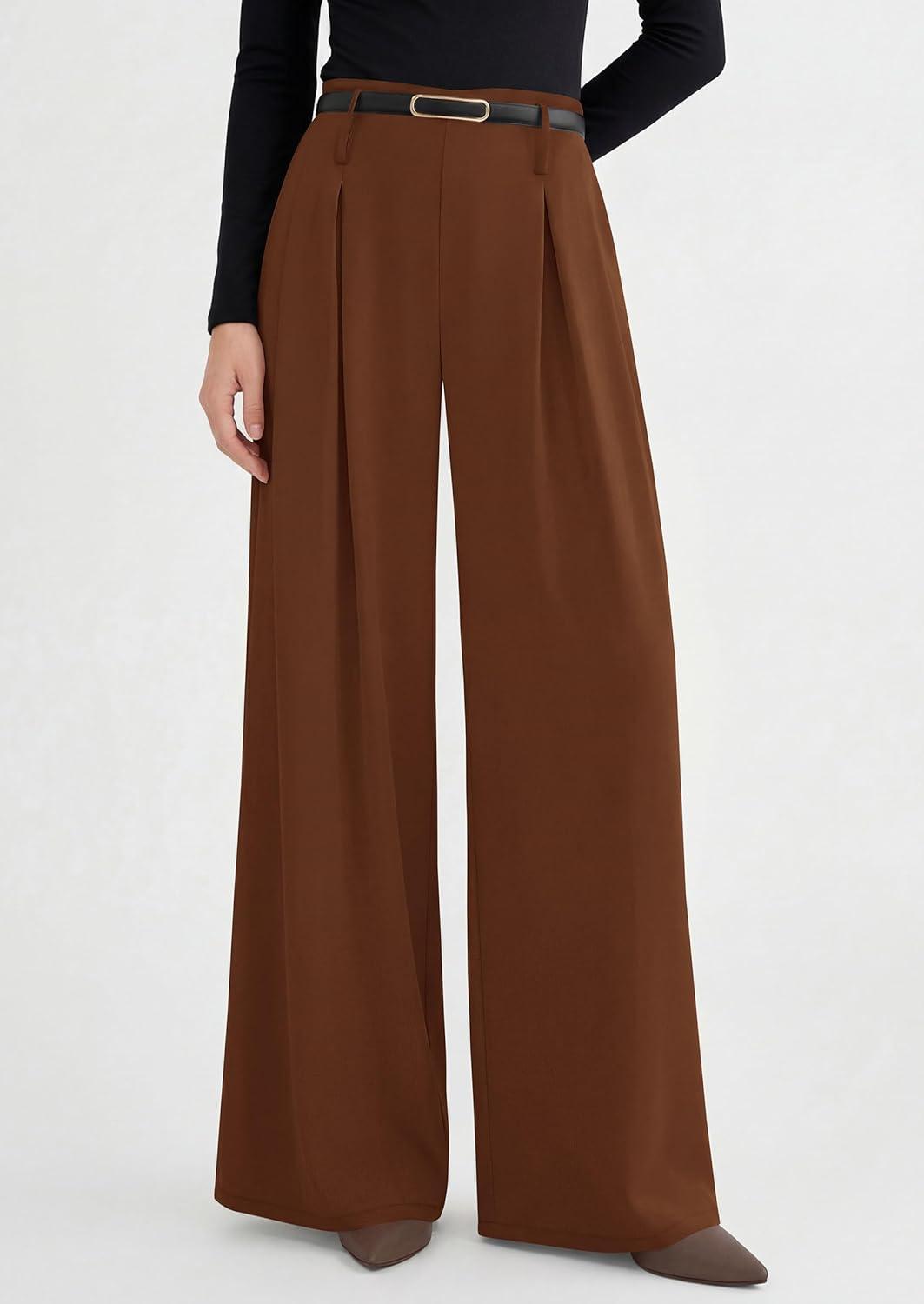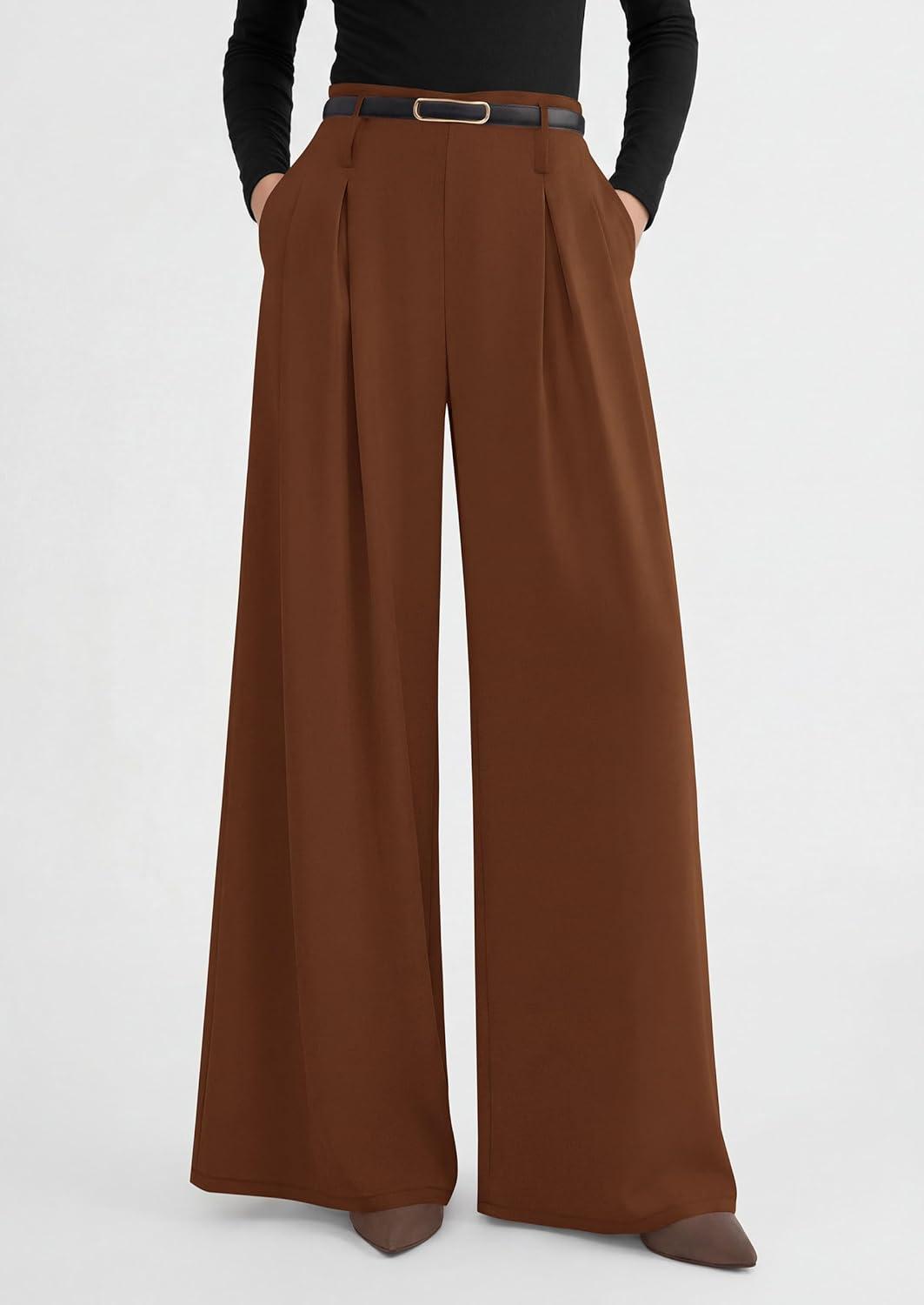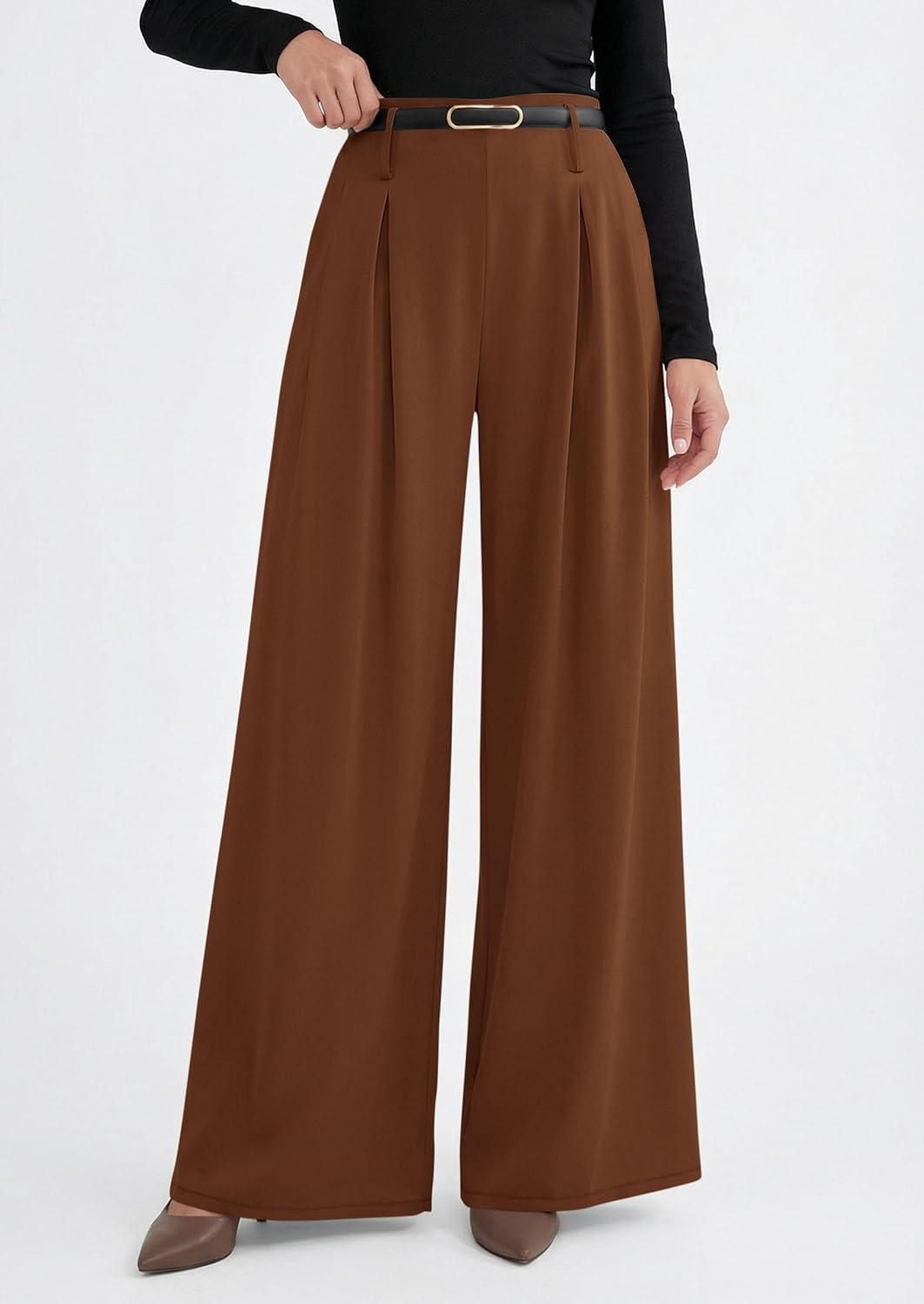 PRETTYGARDEN Womens Spring Wide Leg Trousers 2026 High Elastic Waist Loose Pleated Long Flowy Palazzo Work Pants with Pockets(Red Brown)