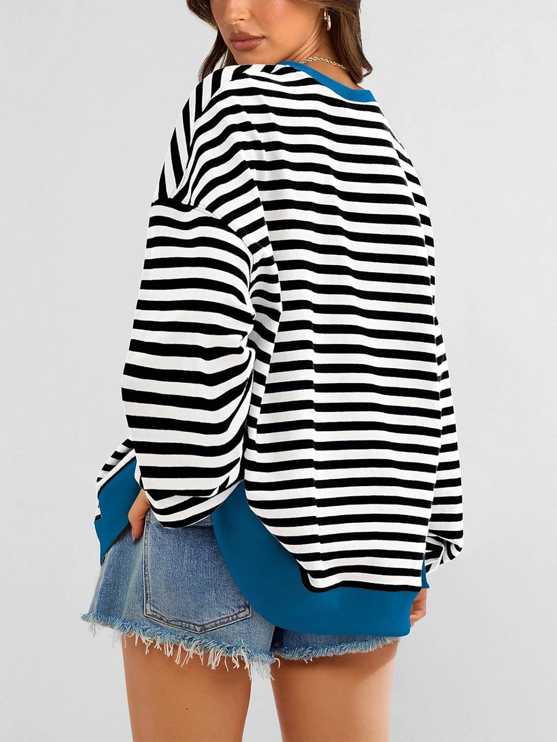 Our clearance section features the best deals on PRETTYGARDEN Womens Striped Oversized Sweatshirt Color Block Crew Neck Long Sleeve Casual Loose Pullover Top Y2K Clothes(Black White) and accessories. Check it out now!