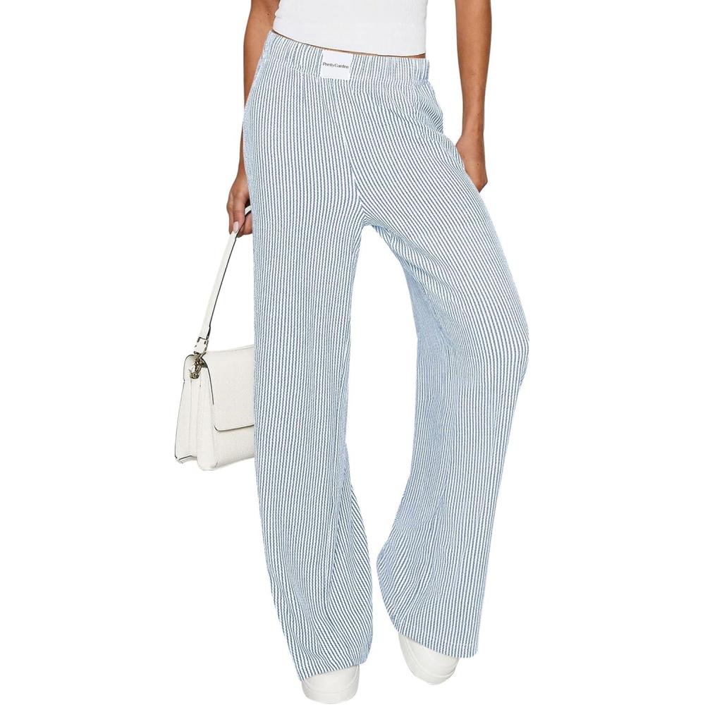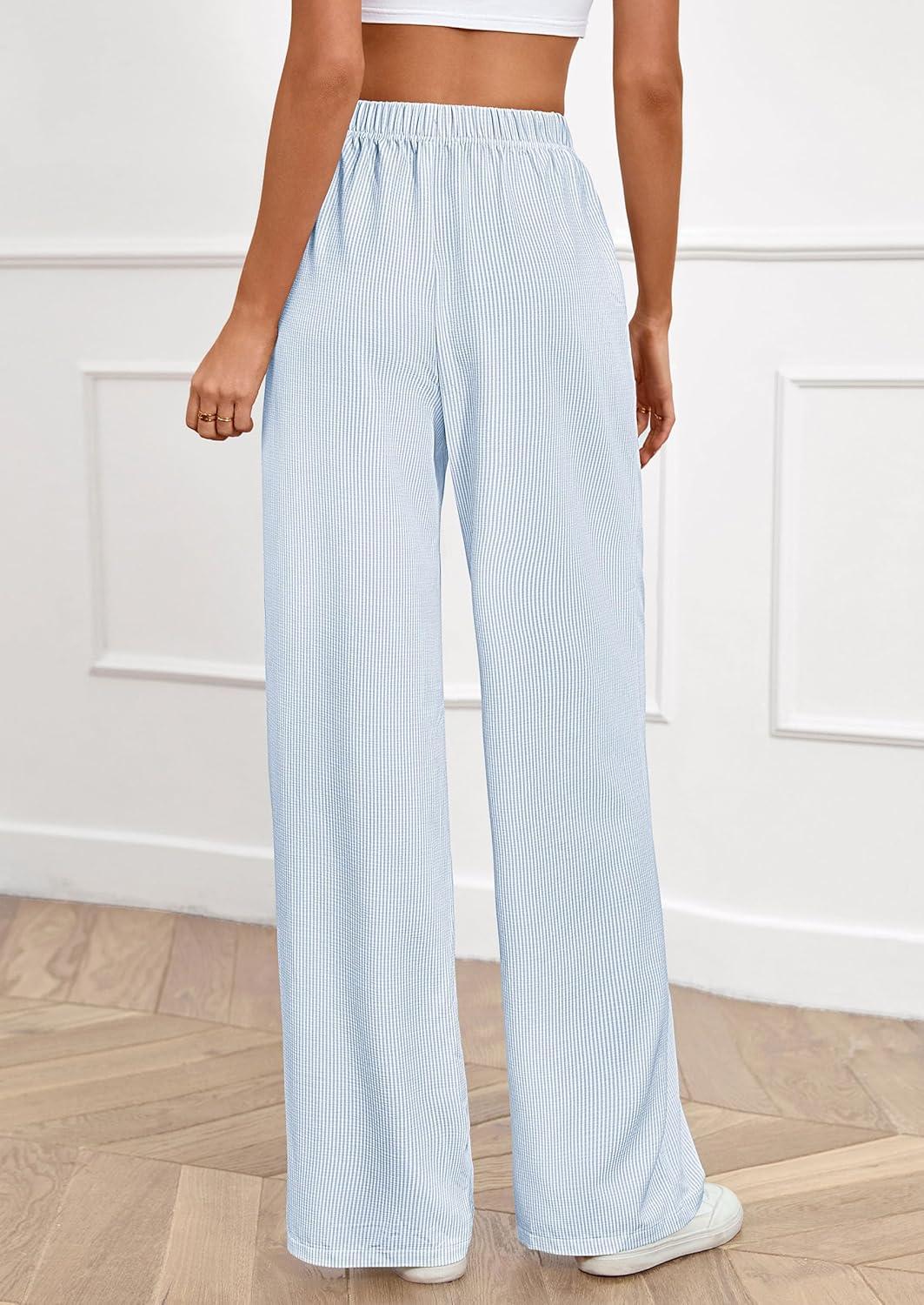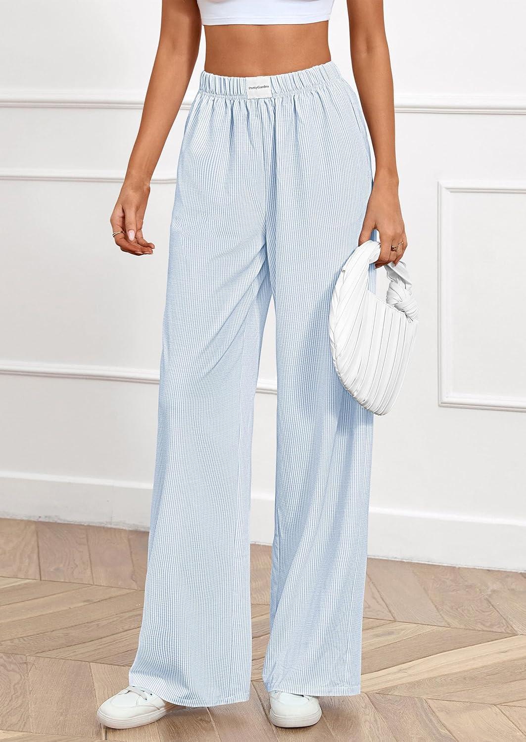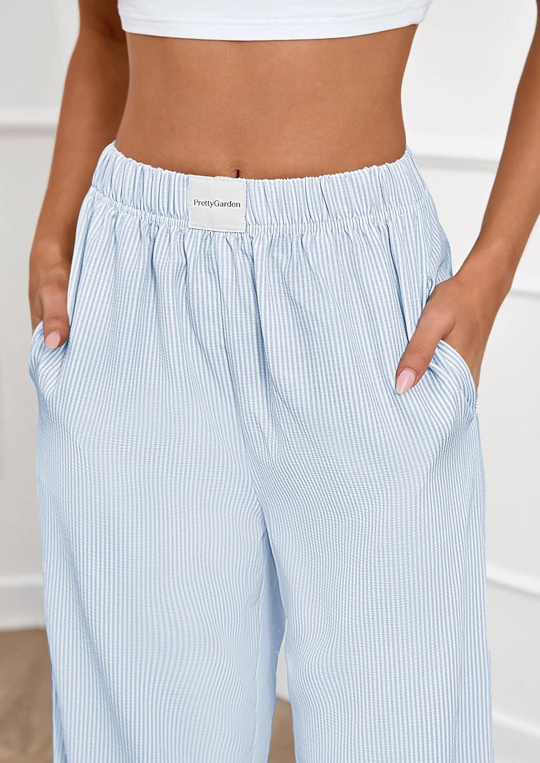 PRETTYGARDEN Women's Striped Pajama Pants 2025 Fall Fashion Clothing Lounge Sleep Pj Bottoms Comfy Casual Wide Leg Trousers(Light Blue)
