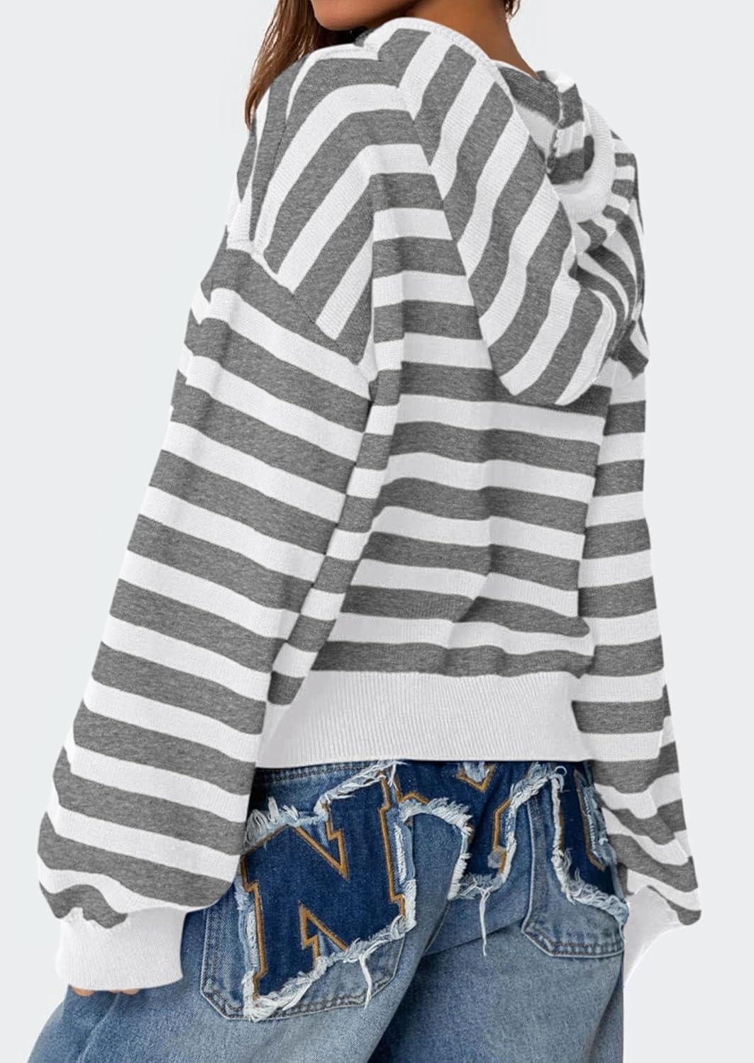PRETTYGARDEN Womens Striped Sweaters 2025 Fall Pullover Hoodies Y2K Casual Long Sleeve Tops Winter Fashion Clothing(Striped Grey White)