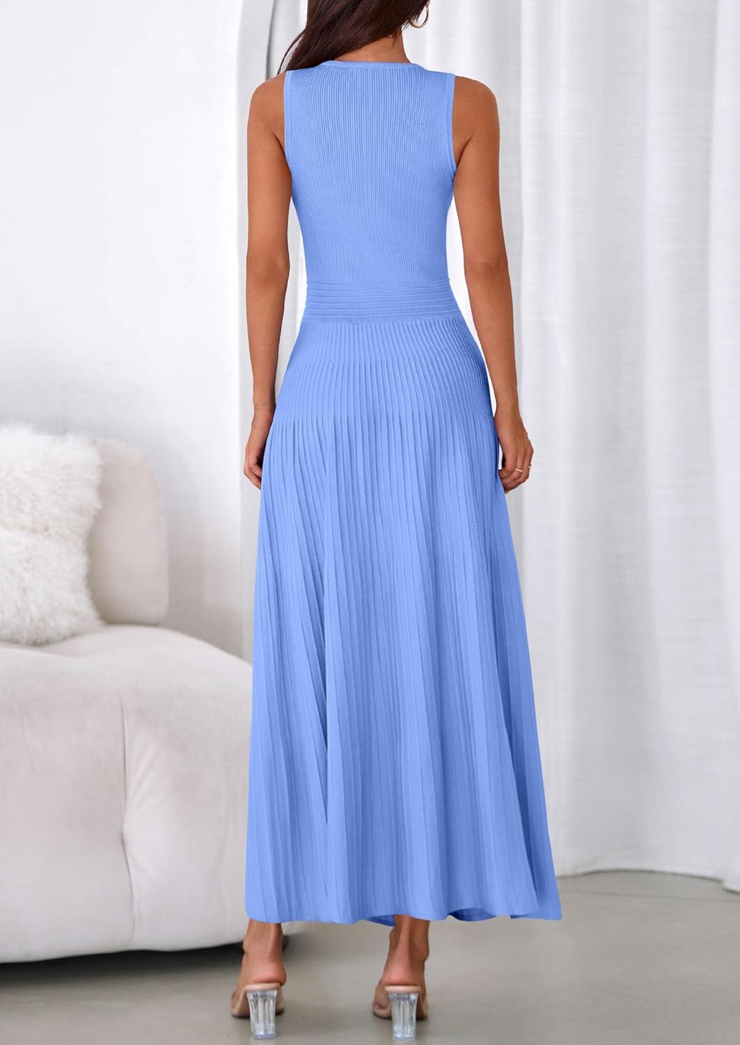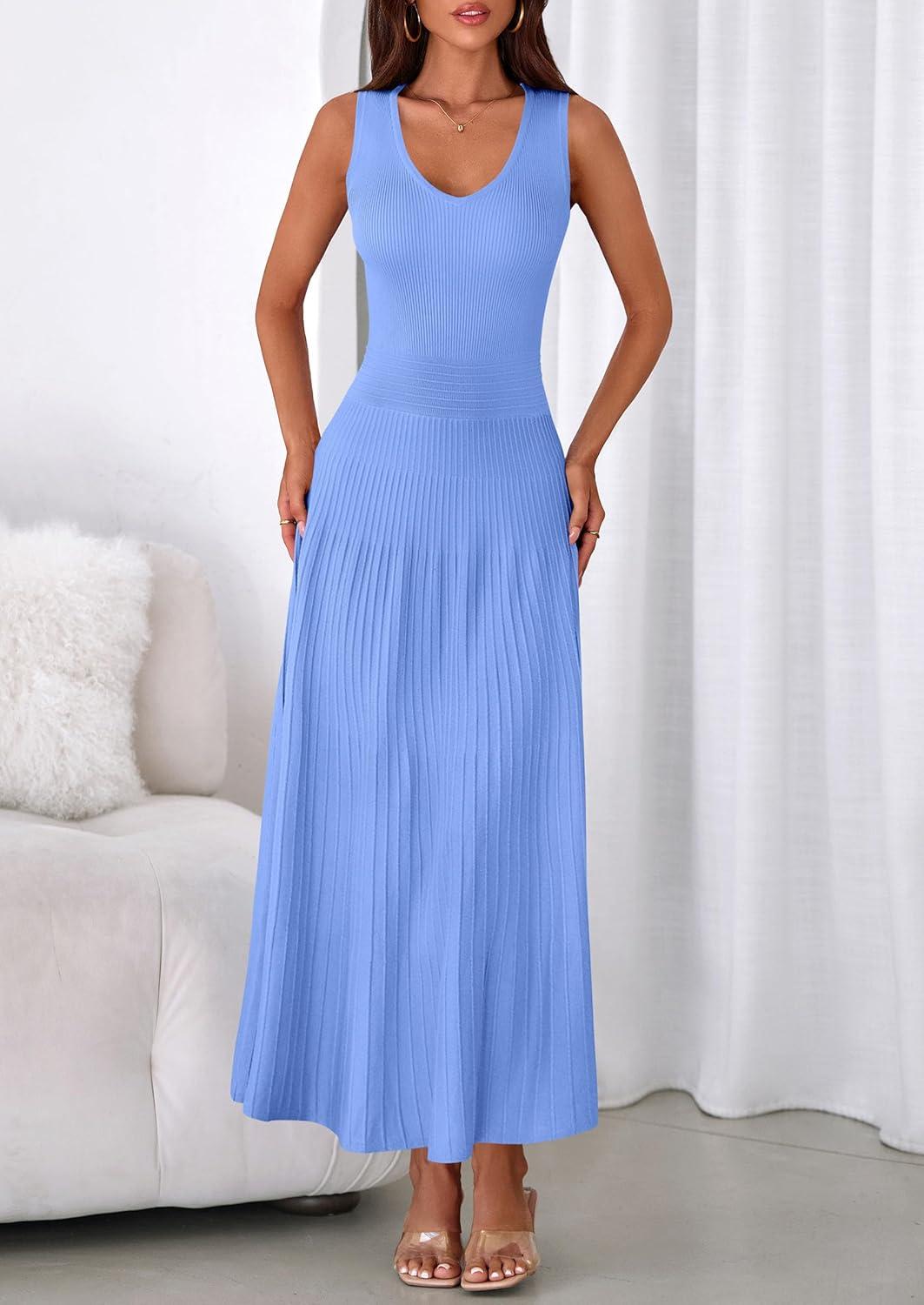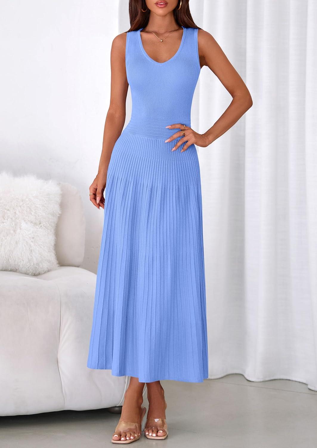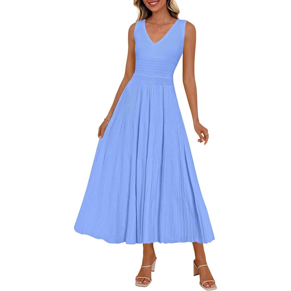 PRETTYGARDEN Women’s Summer Casual Dresses 2026 Spring Sleeveless V Neck Midi Business Work A Line Pleated Cocktail Dress(Light Blue)