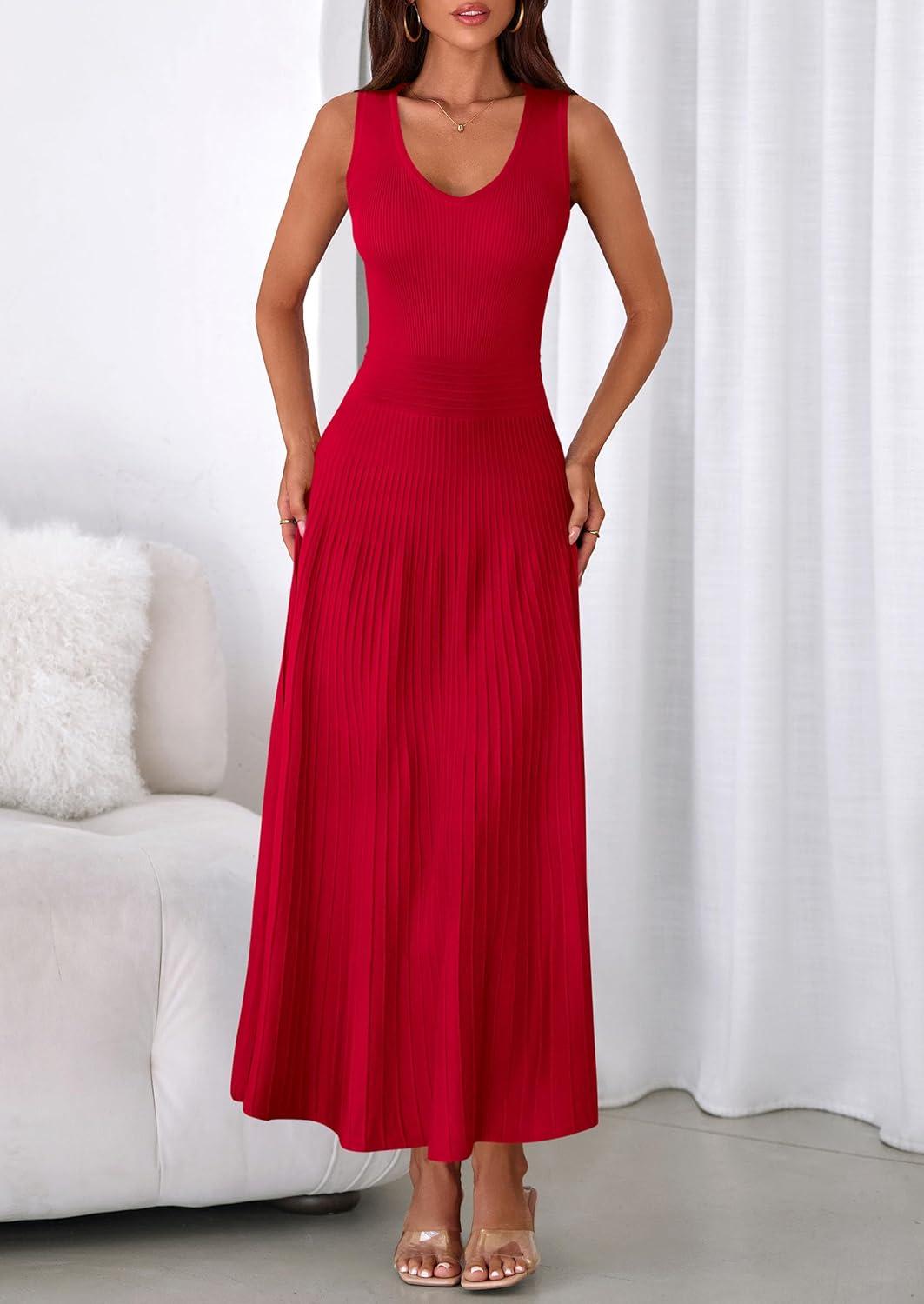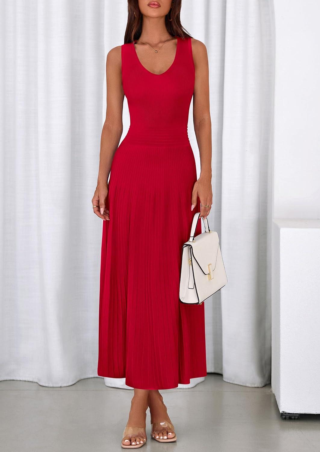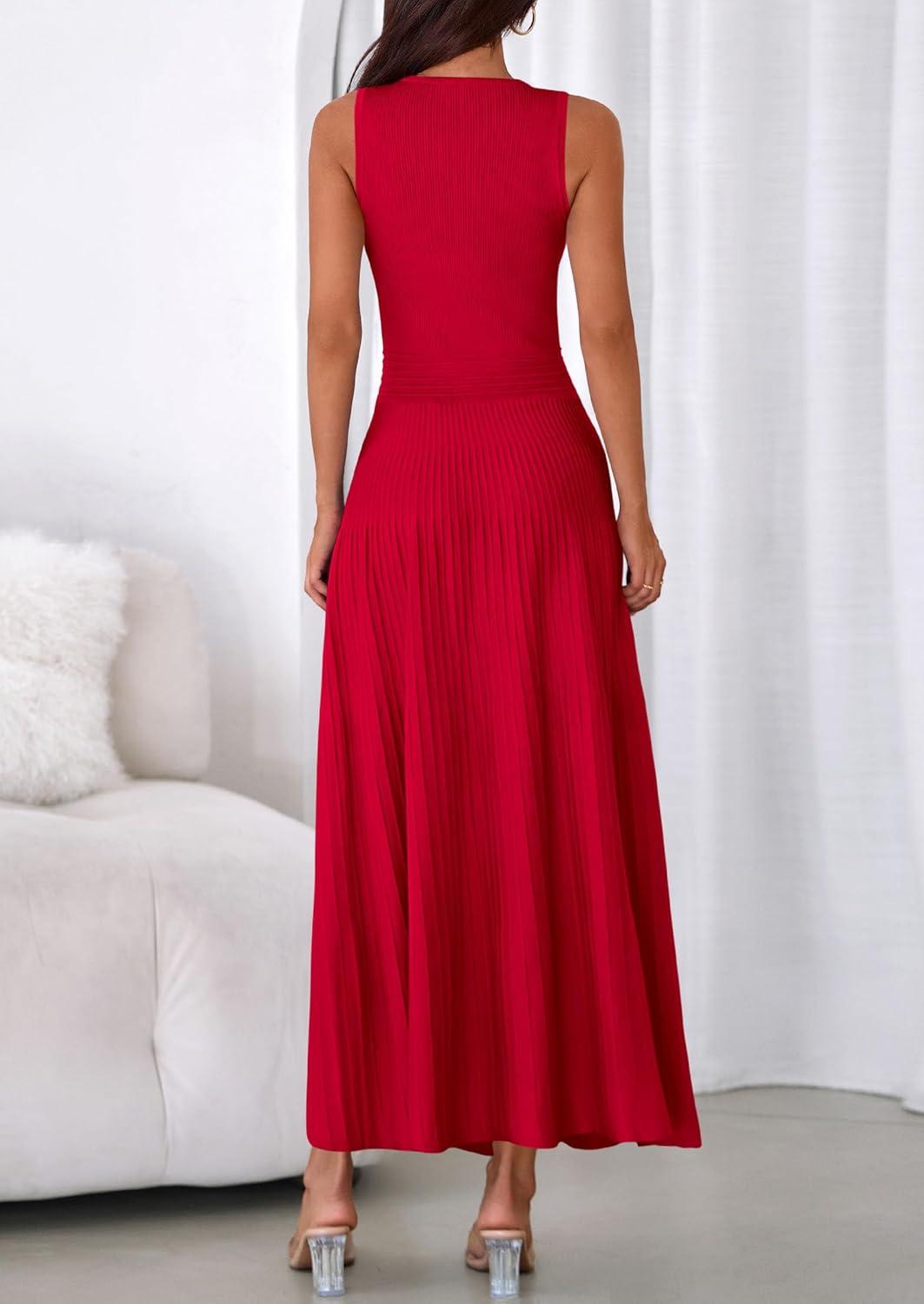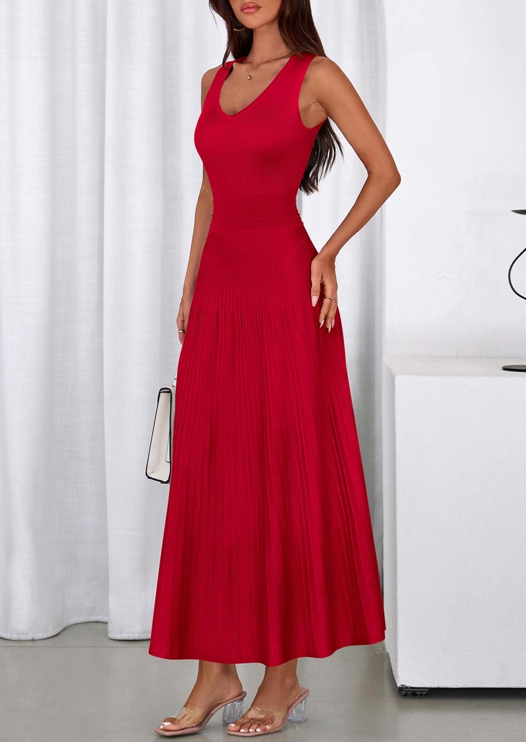 PRETTYGARDEN Women’s Summer Casual Dresses 2026 Spring Sleeveless V Neck Midi Business Work A Line Pleated Cocktail Dress(Red)