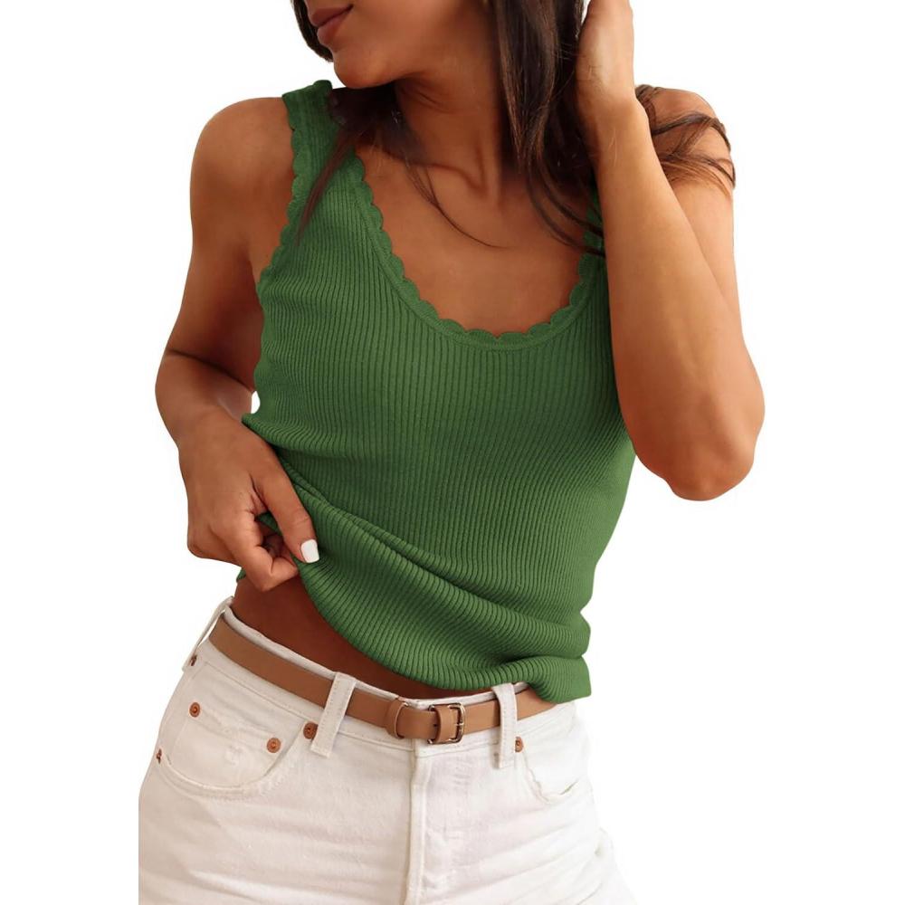 PRETTYGARDEN Womens Summer Sleeveless Tank Tops 2026 V Neck Ruffle Lightweight Ribbed Knit Shirt Casual Going Out Top(Army Green)