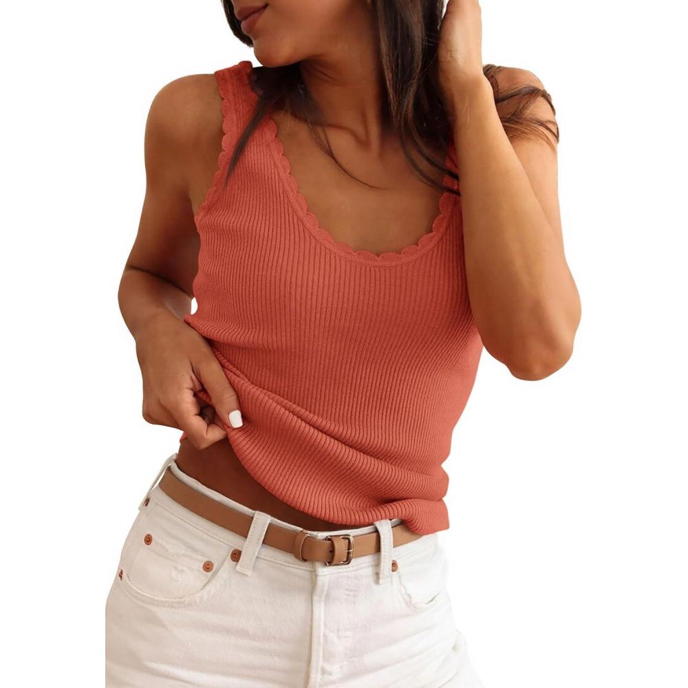 PRETTYGARDEN Womens Summer Sleeveless Tank Tops 2026 V Neck Ruffle Lightweight Ribbed Knit Shirt Casual Going Out Top(Orange)