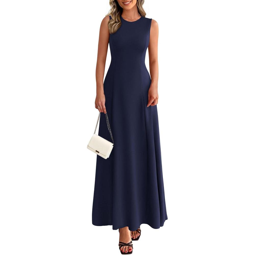 PRETTYGARDEN Women’s Summer Tank Maxi Dress 2026 Spring Sleeveless Swing A Line Long Flowy Elegant Cocktail Dresses Pockets(Navy Blue)