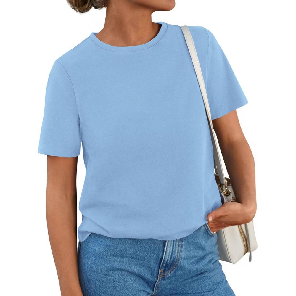 PRETTYGARDEN Womens Summer Tops 2026 Casual Basic Crewneck Short Sleeve Shirts Spring Fashion Clothing Going Out Outfits(Blue)