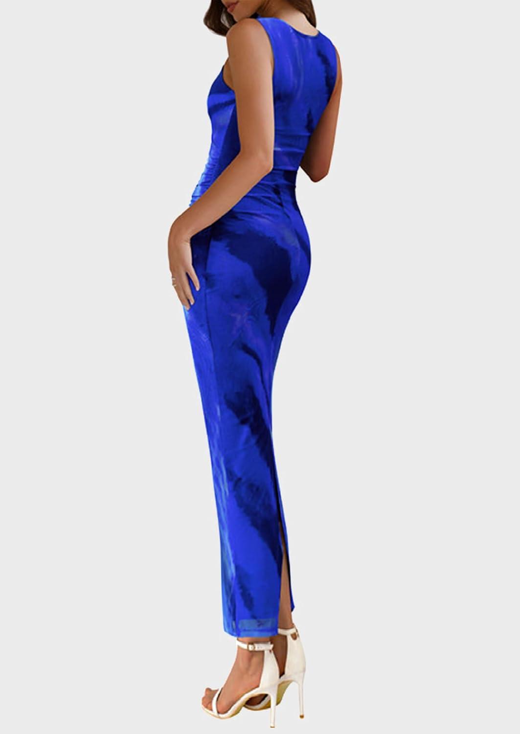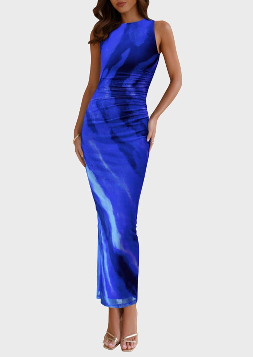 PRETTYGARDEN Womens Summer Wedding Guest Dress 2026 Spring Mesh Sleeveless Bodycon Ruched Floral Holiday Maxi Long Dresses(Blue Watercolour)