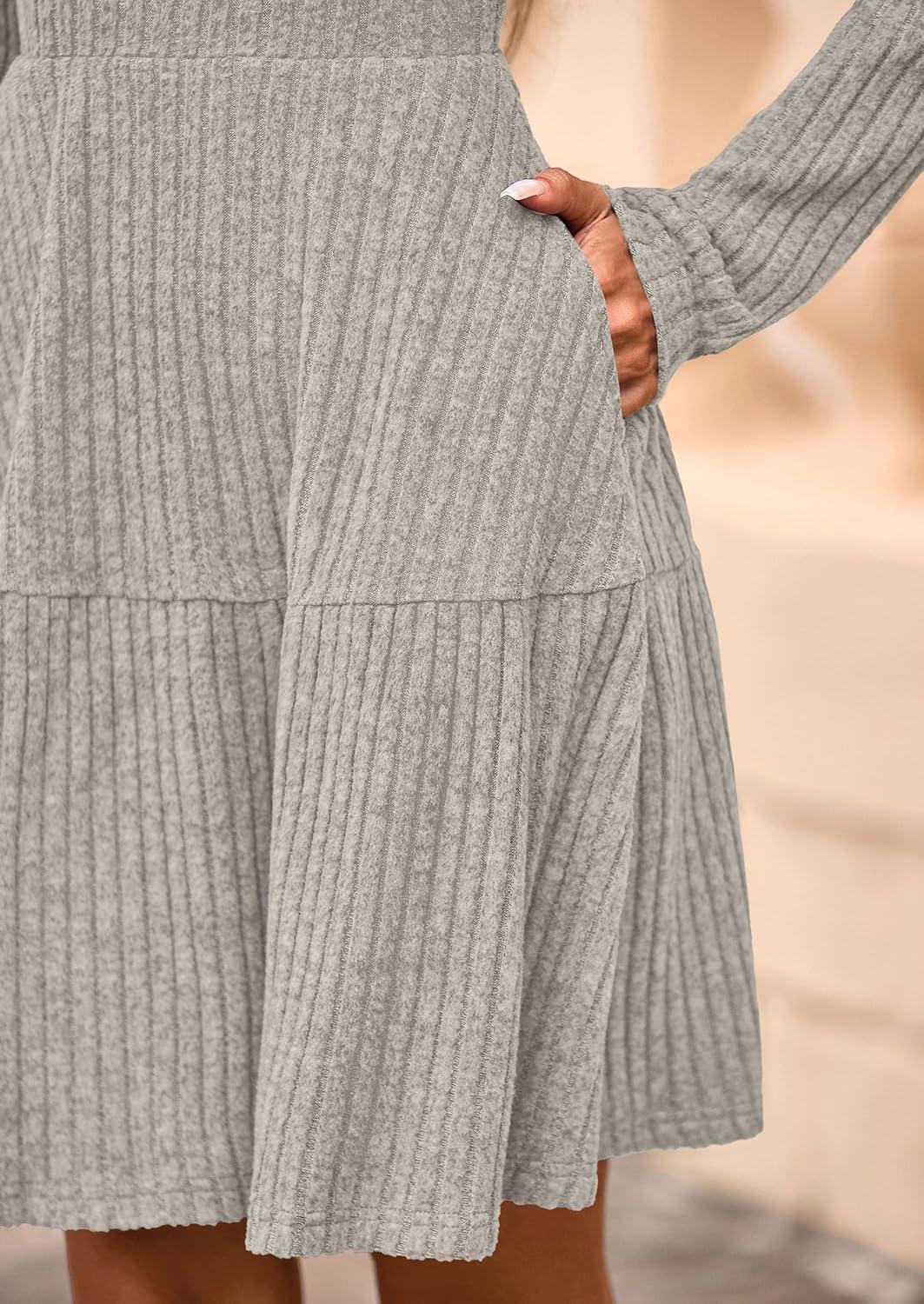 PRETTYGARDEN Womens Sweater Dress 2025 Fall Long Sleeve V Neck A Line Fit and Flare Ribbed Short Dresses Knit Outfits Pockets(Light Grey)