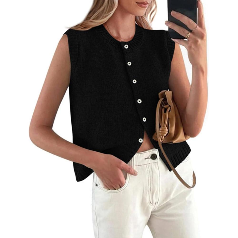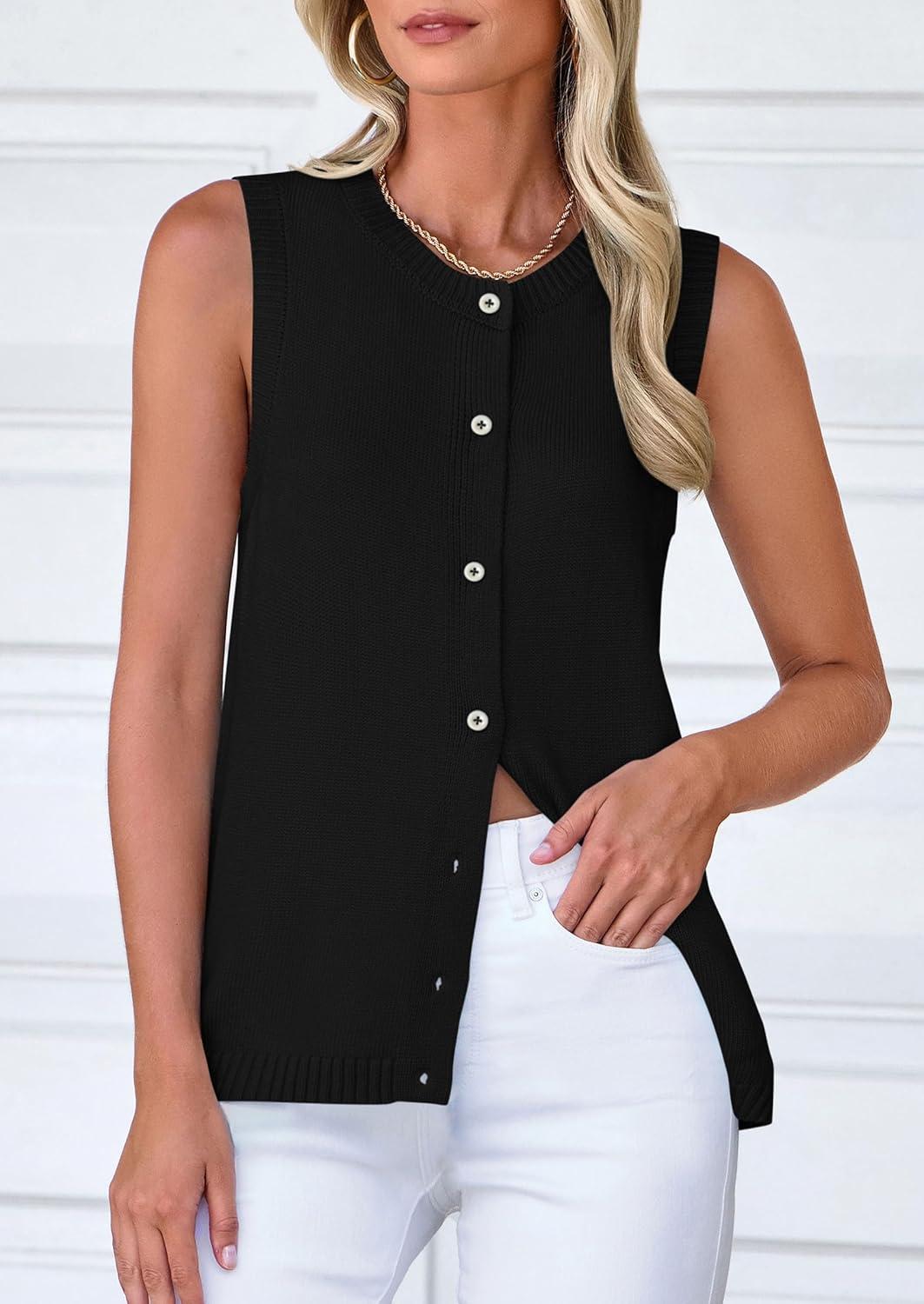 PRETTYGARDEN Womens Sweater Vest Cardigans 2025 Fall Lightweight Casual Sleeveless Button Down Knit Tank Tops(Black)