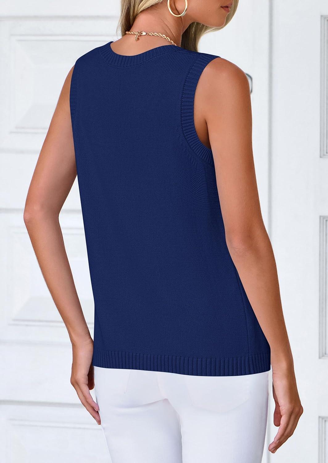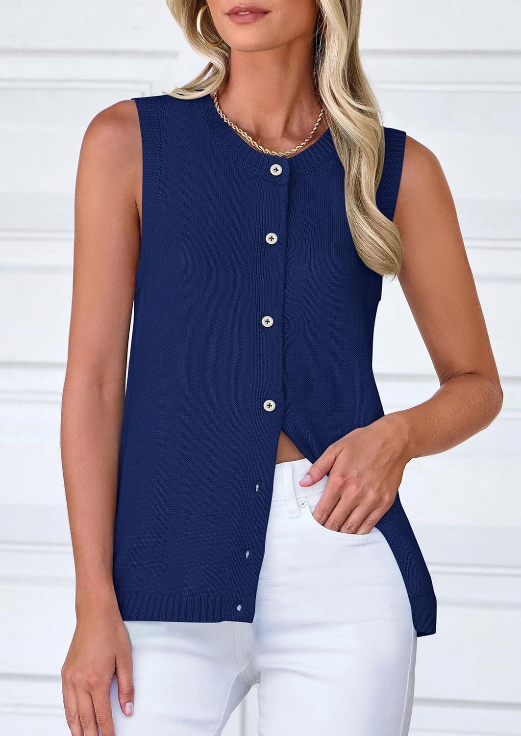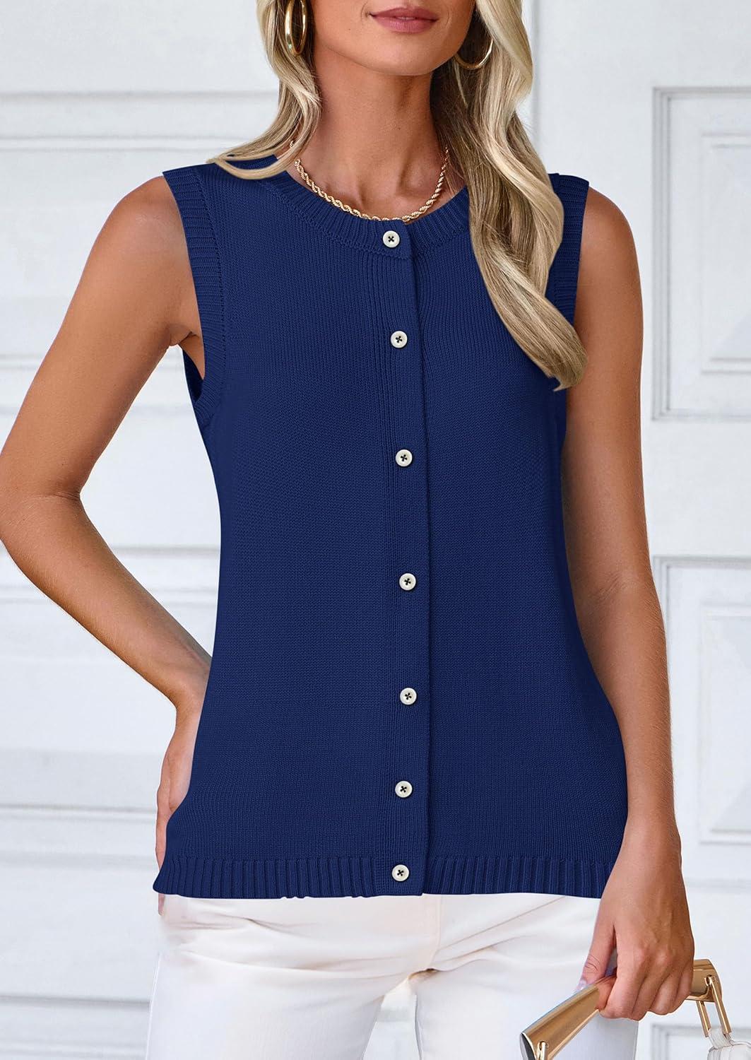 PRETTYGARDEN Womens Sweater Vest Cardigans 2025 Fall Lightweight Casual Sleeveless Button Down Knit Tank Tops(Dark Blue)